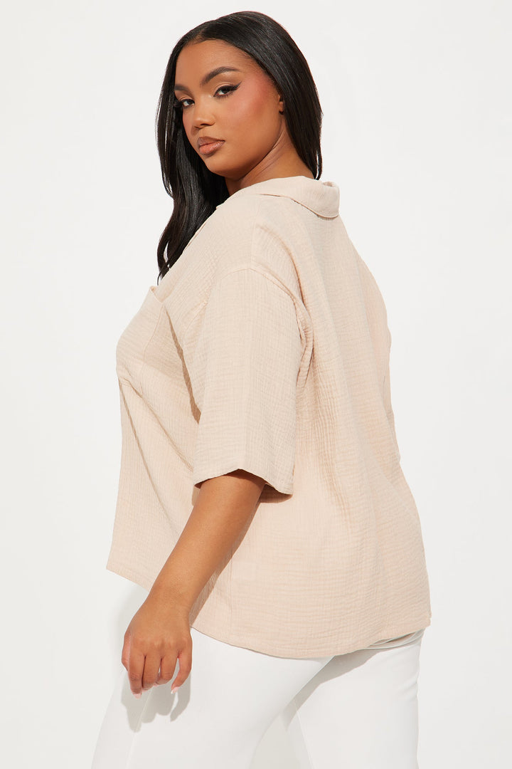 Available In Pink And Taupe. | Oversized Shirt | Non Stretch | Front Pocket | 100% Cotton | Imported