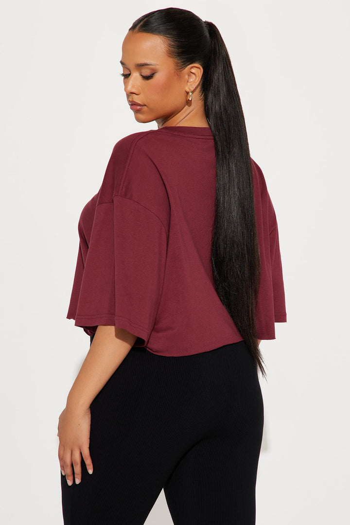 Available In Brown And Burgundy. | Oversized Cropped Tee | Crew Neck | Short Sleeve | 100% Cotton | Imported