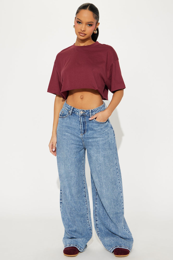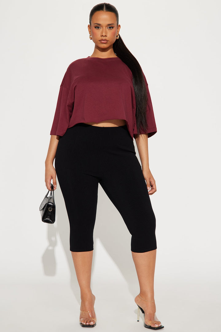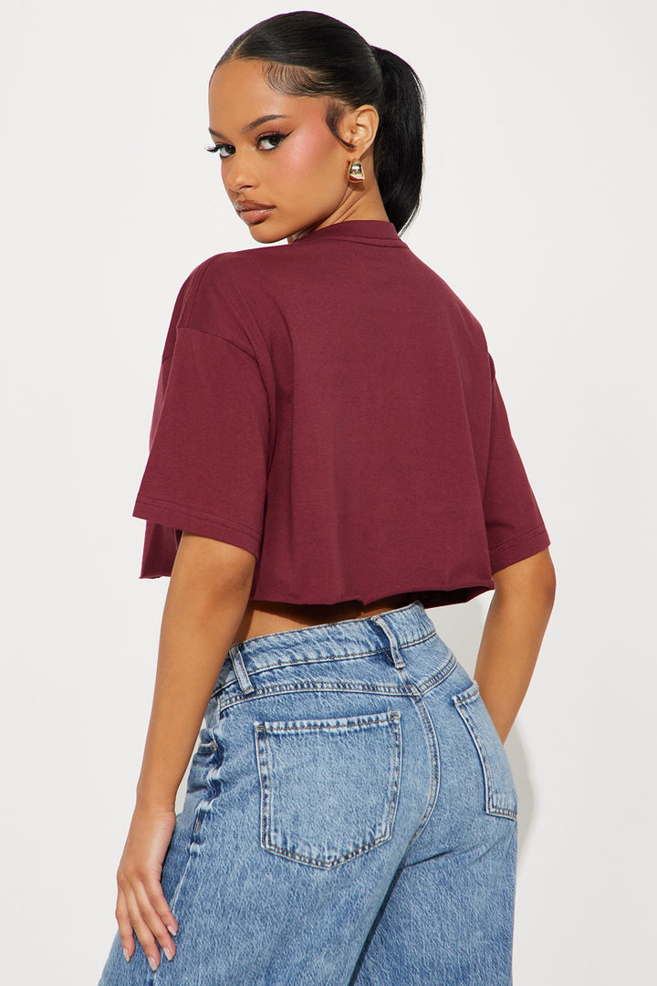 Available In Brown And Burgundy. | Oversized Cropped Tee | Crew Neck | Short Sleeve | 100% Cotton | Imported