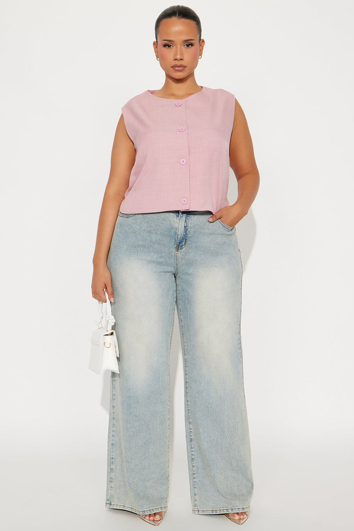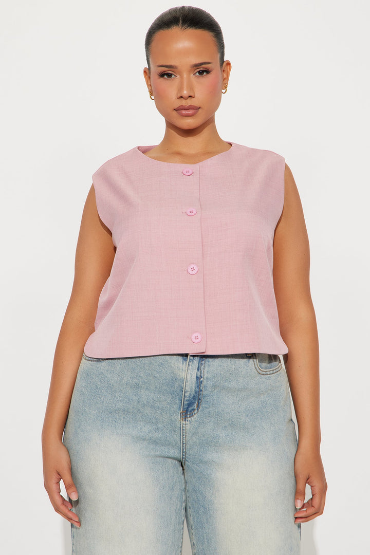 Available In Pink And Taupe. | Vest | Crew Neck | Button Up | Non Stretch | Self : 97% Polyester 3% Spandex | Imported