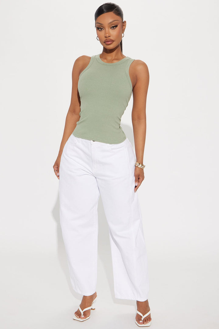 Available In Black, Chestnut And Sage. | High Neck Tank | Sleeveless | Washed | Ribbed | Stretch | 94% Cotton 6% Spandex | Imported