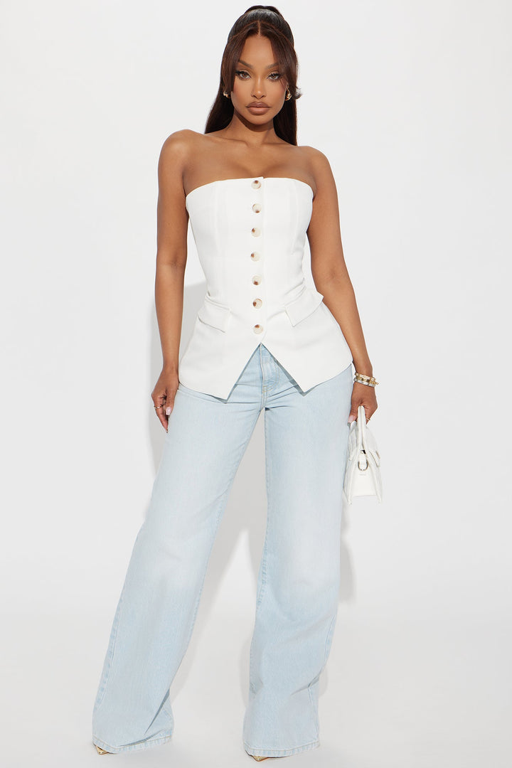 Available In Brown, Charcoal And White. | Vest Top | Faux Flap Pockets | Button Front | Lined | Non Stretch | Self: 95% Polyester 5% Spandex | Lining: 100% Polyester | Imported