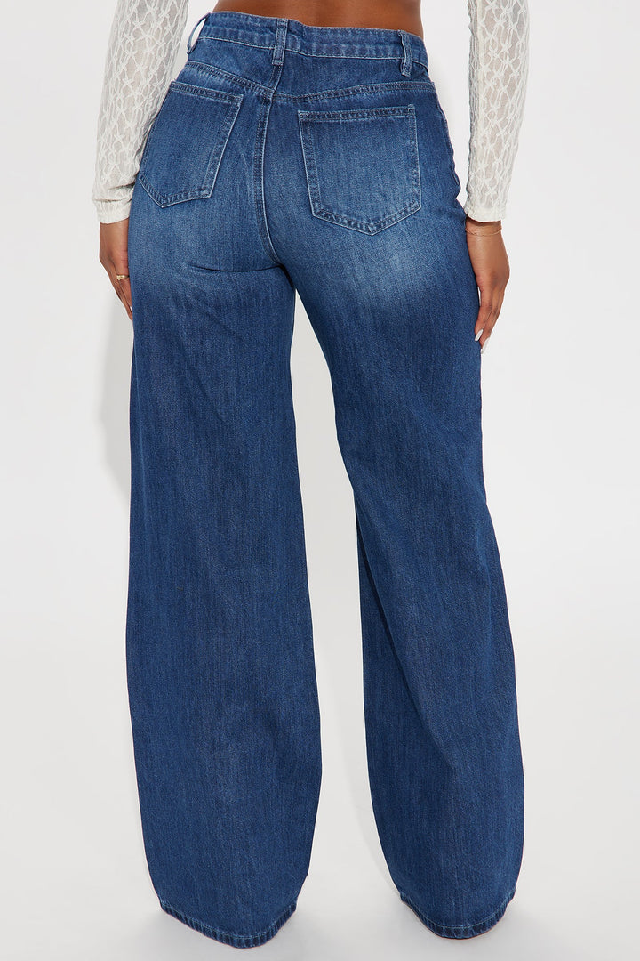 Thrilled To Pieces Wide Leg Patchwork Jeans - Medium Wash