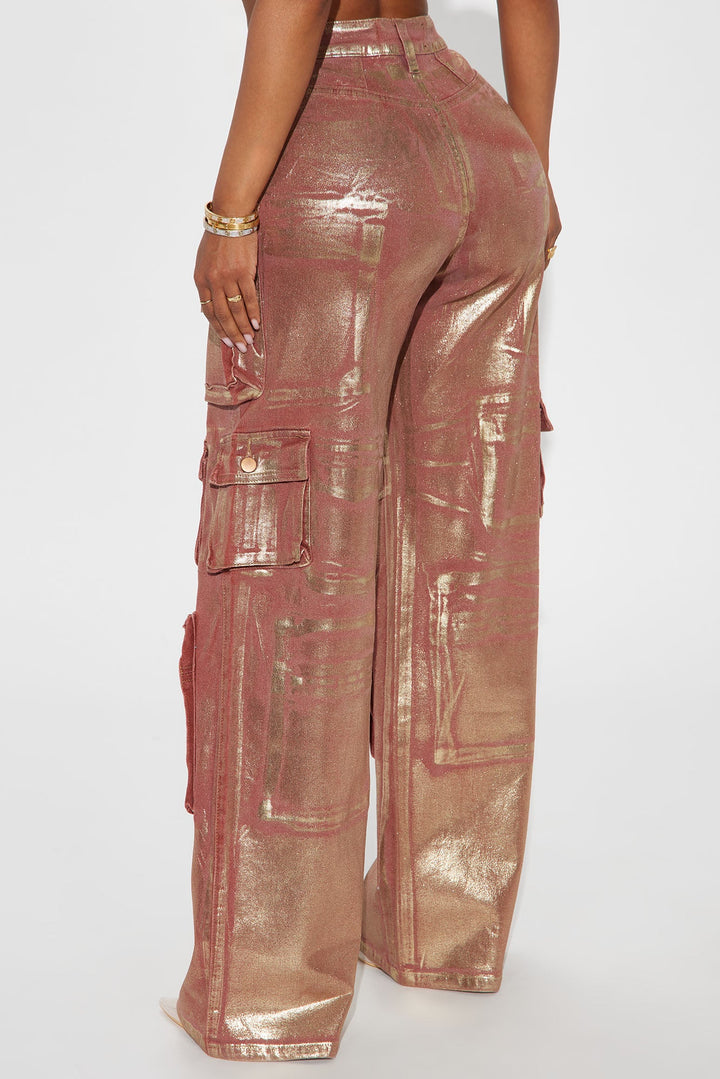 Time To Shine Foil Baggy Cargo Jeans - Burgundy