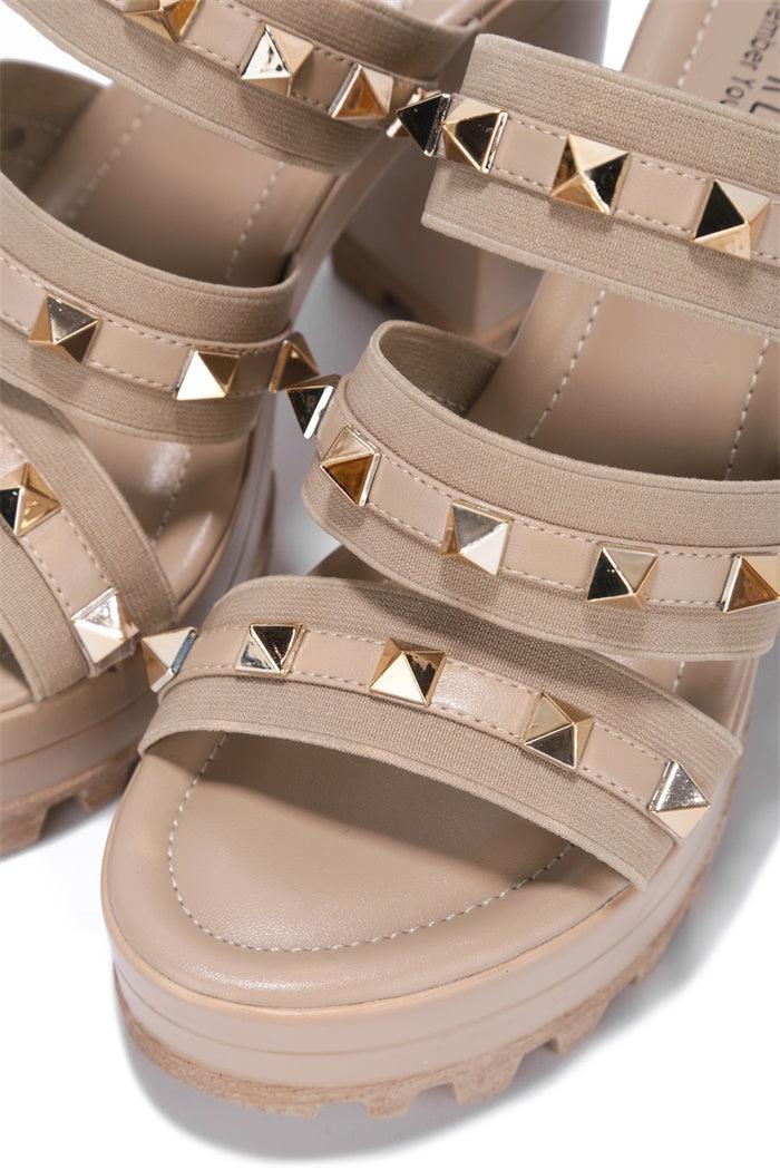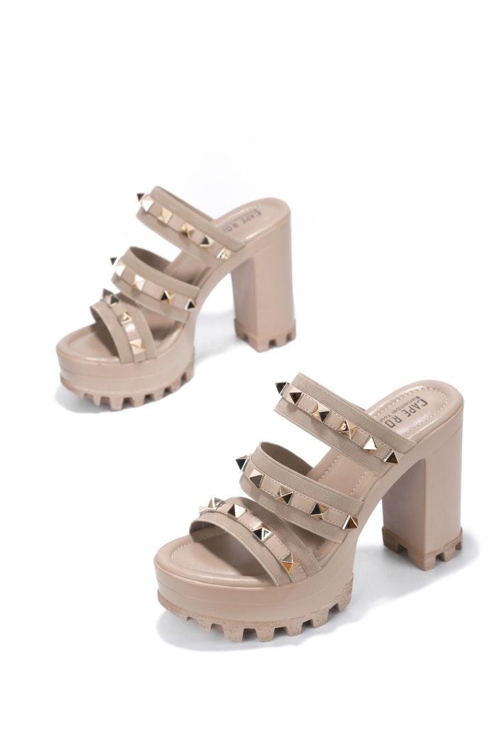 TINLEY - NUDE - HEELS by CAPE ROBBIN round toe platform block heels lug spike trim The Tinley platform block heels offer a chic,energetic look. Features a lug sole for extra traction and spike trim providing an edgy vibe. These stylish heels are perfect for casual occasions. Available in nude,black,and blush.