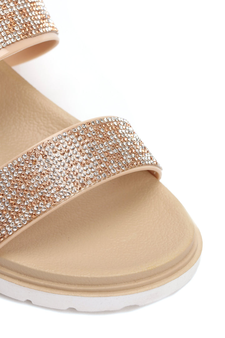 Available In Beige. | Double Strap | Adjustable Strap | Rhinestones