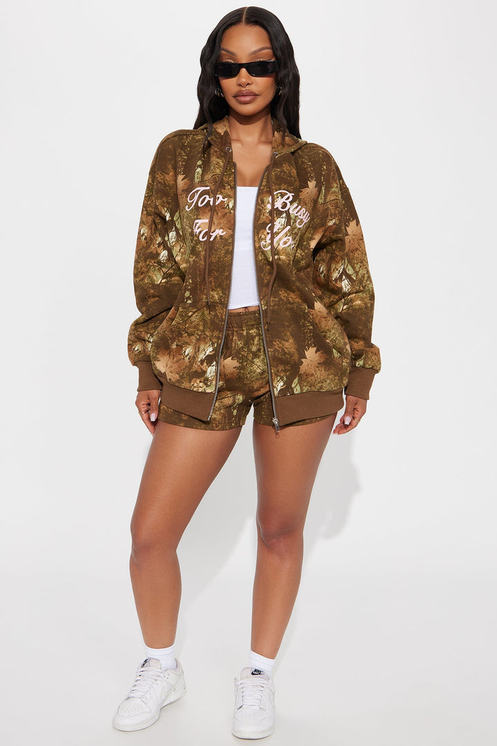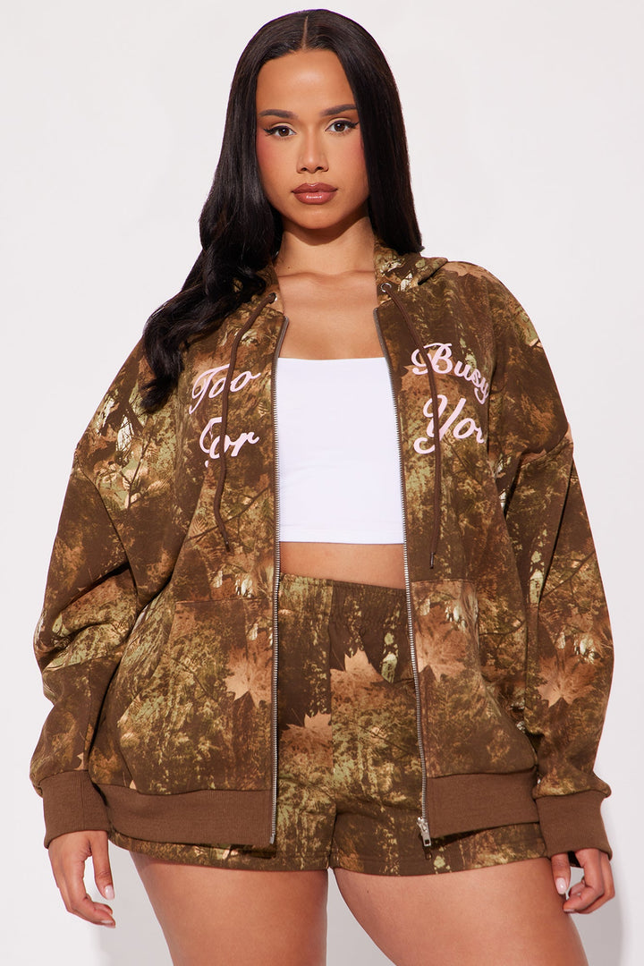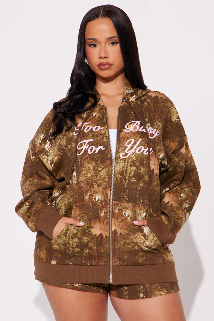 Too Busy For You Camo Zip Hoodie - Camouflage