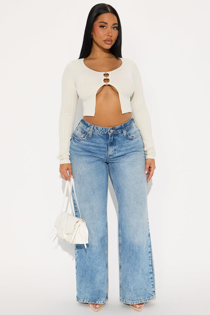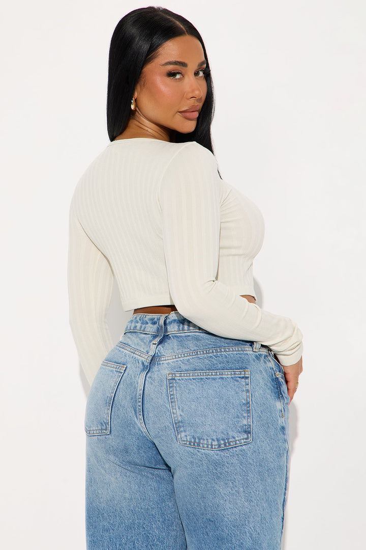 Available In Stone. | Ribbed Top | Scoop Neck | Long Sleeve | Hardware | Cropped | Stretch | Self : 92% Nylon 8% Spandex | Imported