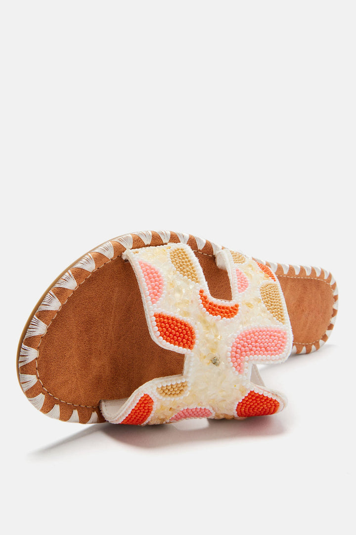 Available In White. | Flat Sandals | Round Toe | Beaded Detail | Imported