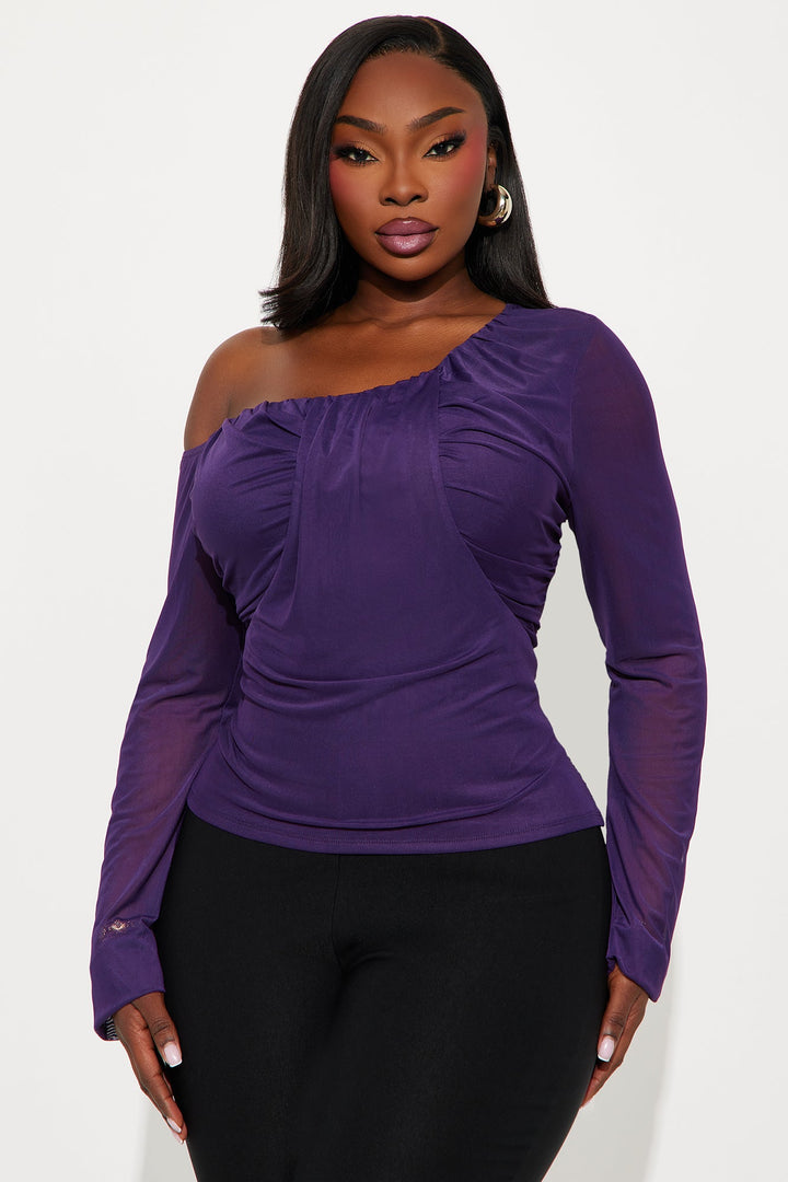 Trinity Off Shoulder Mesh Top - Eggplant