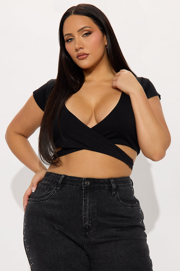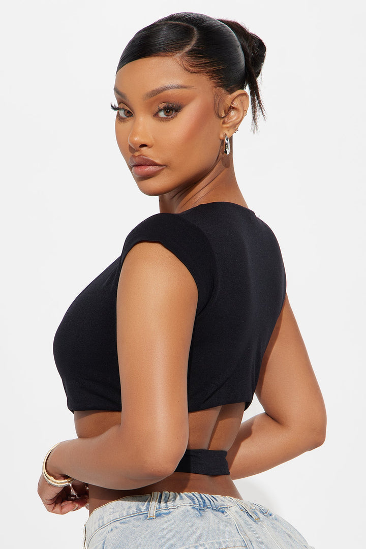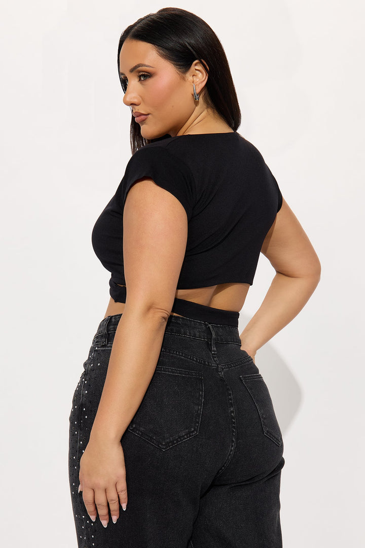 Available In Black And White. | Baby Tee | Stretch | Short Sleeve | V-Neck | Cut Out | Double Lined | Cropped | Self: 92%Nylon 8%Spandex | Imported
