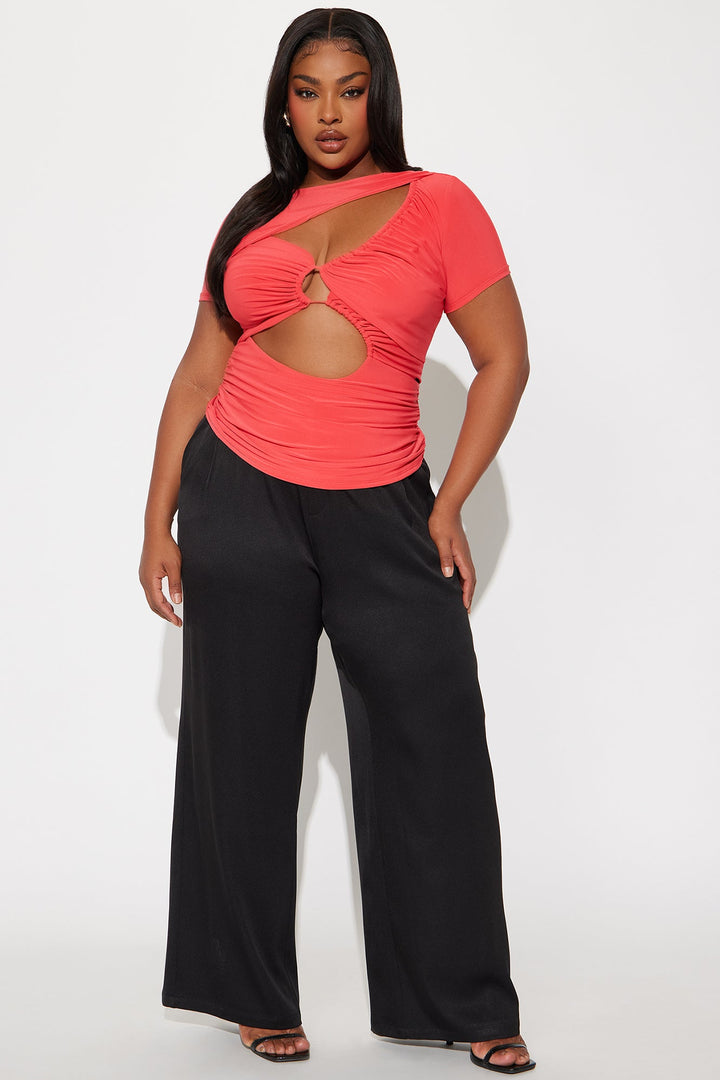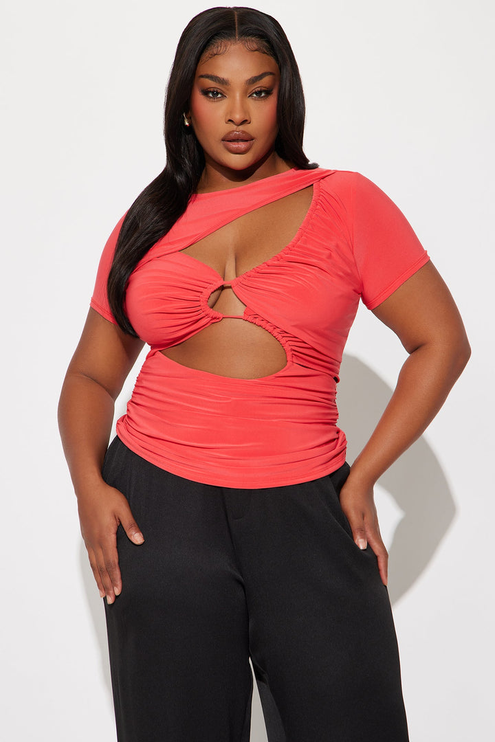 Trouble Maker Short Sleeve Cut Out Top - Coral
