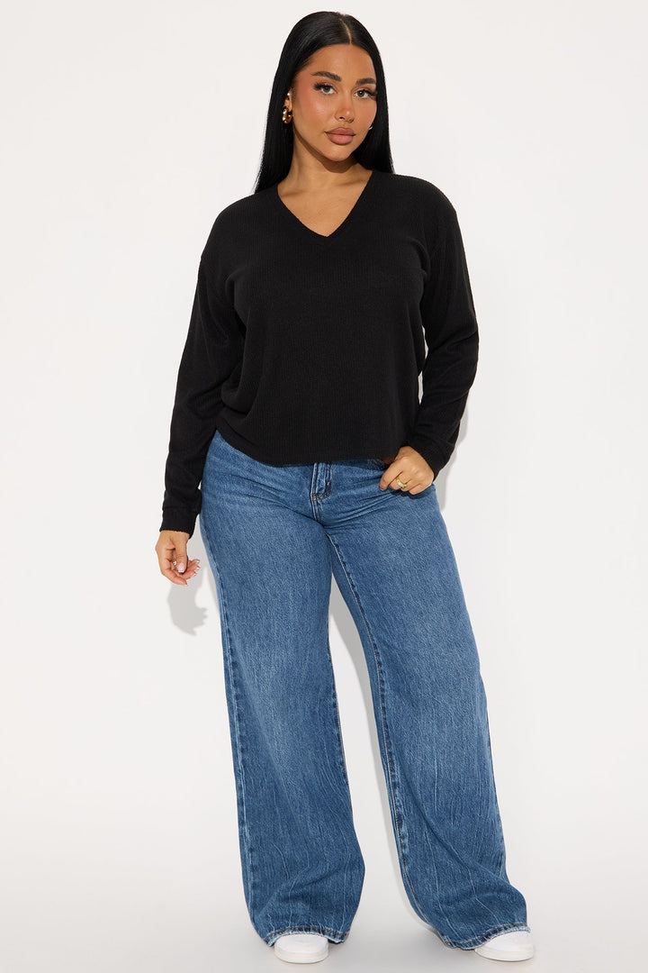 Tyra V Neck Brushed Hacci Rib Top - Black