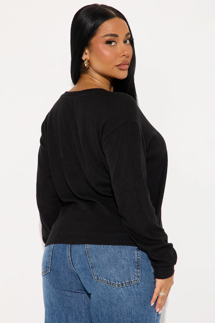 Tyra V Neck Brushed Hacci Rib Top - Black