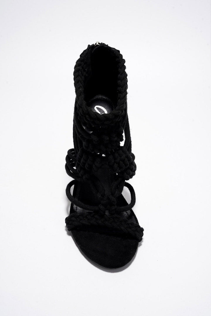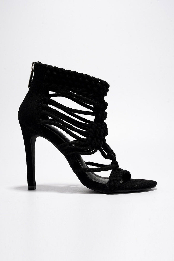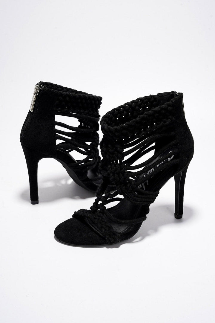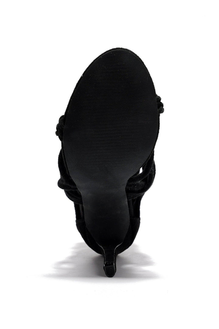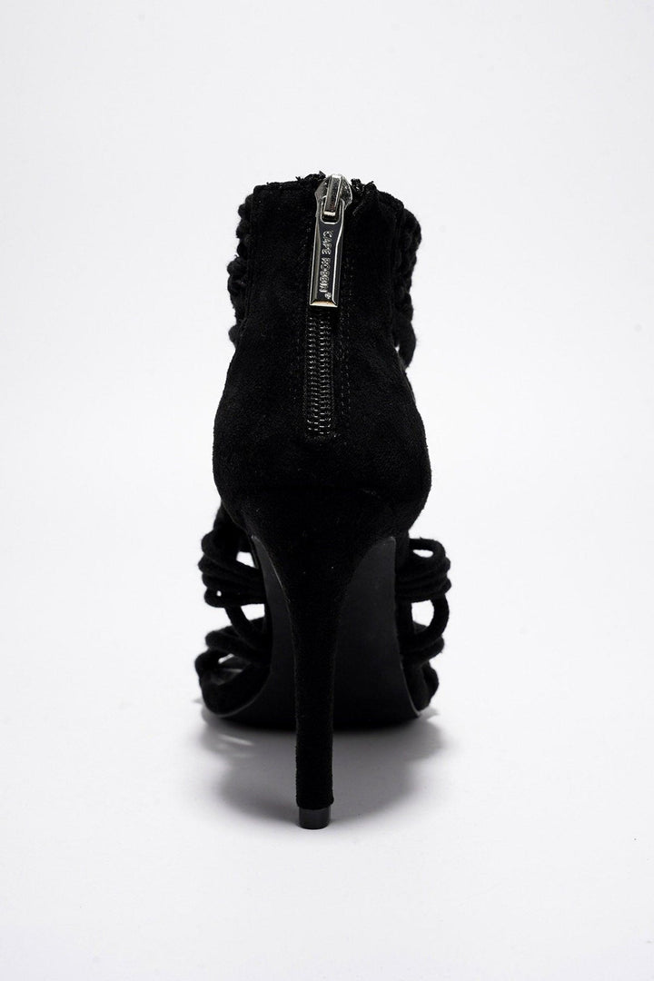 UNANE-2 - BLACK - HEELS by CAPE ROBBIN open pointy toe lightly cushioned insole rubber outsole zipper closure multi-strap vamp Cape Robbin's Unane-2 serves a delicate style that elevates outfits. Features a soft suede finish for an elegant touch to the skin and a woven-together multi-vamp strap for a gorgeous look that offers comfort and breathability.