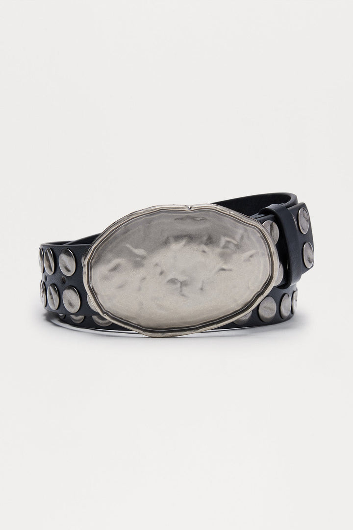 Available In Black And Red. | Faux Leather Material | Hardware Detail | Textured Buckle Detail | Length: 39" | Imported