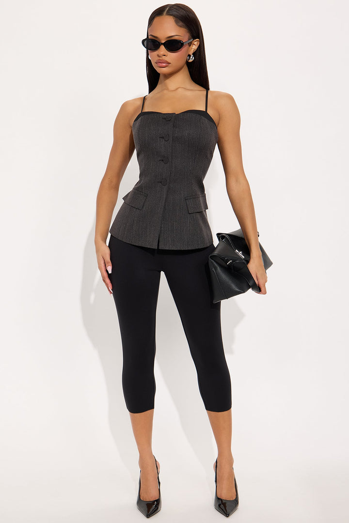 Available In Grey/combo. | Vest | Adjustable Straps | Button Up | Contrast Trim | Faux Pockets | Fully Lined | Non Stretch | Self: 97% Polyester 3% Spandex | Cont: 100% Polyester | Lining: 100% Polyester | Imported