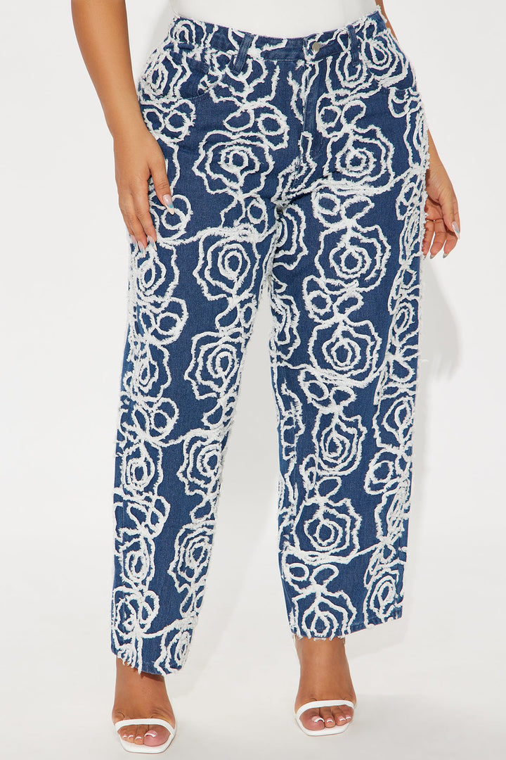 Urban Flora Loose Straight Leg Jeans - Medium Wash