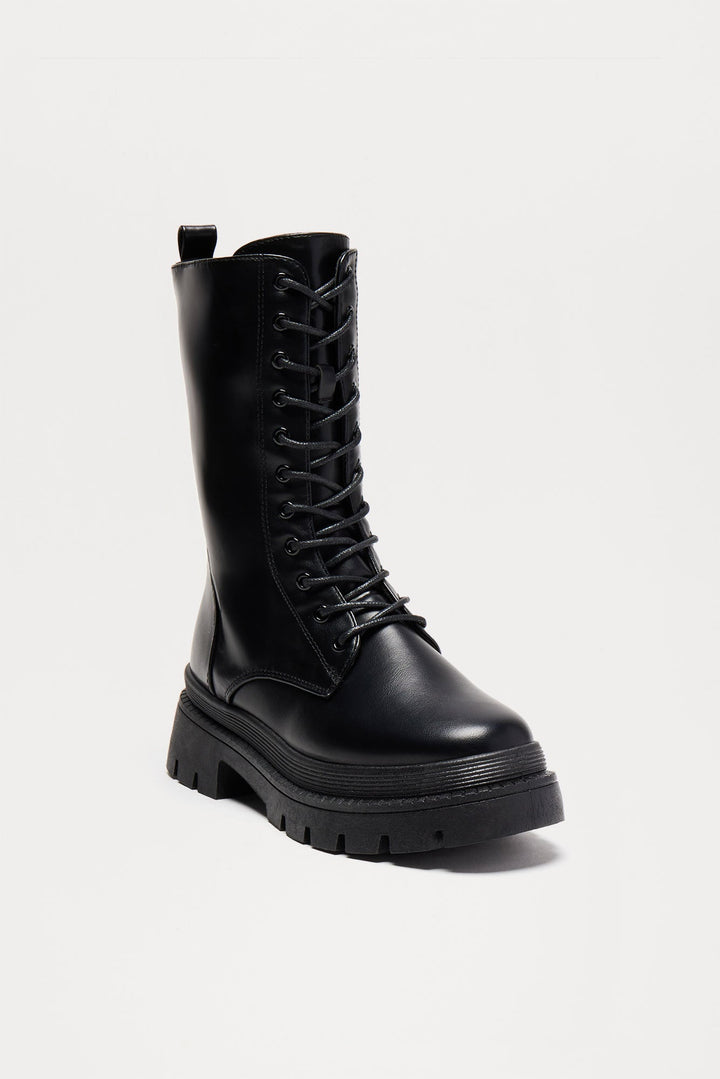 Available In Black And Cream. | Booties | Lace Up Detail | Round Toe | 2" Low Block Heel | Imported