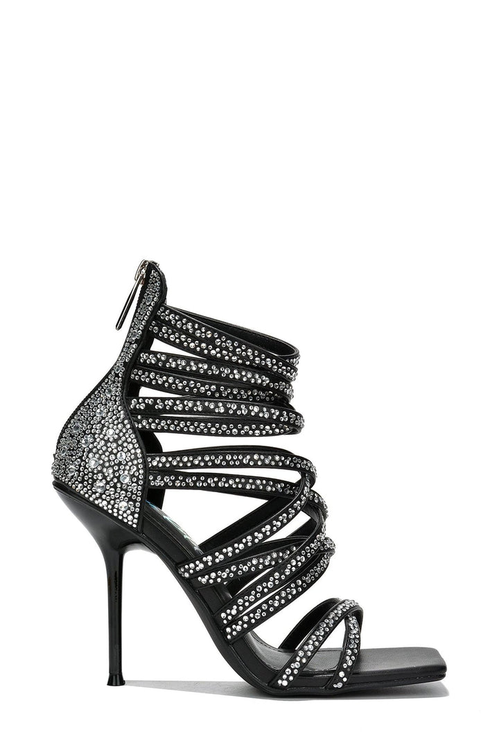 VENEZIA - BLACK - HEELS by CAPE ROBBIN square toe skinny high heels zipper closure metallic PU rhinestone crusted These flashy Venezia skinny high heels will have you shining in any room! These rhinestone-crusted shoes will be the perfect addition to any night-out look. Get it in black,silver,or gold.
