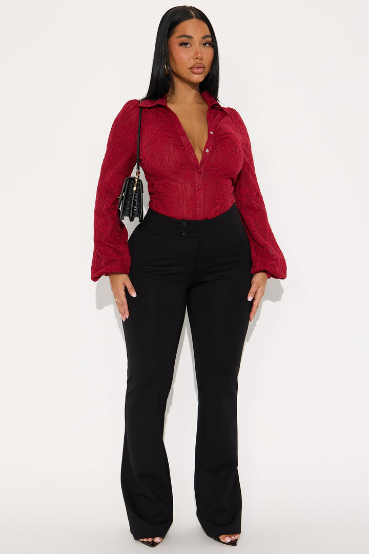 Verity Lace Long Sleeve Button Up Shirt - Burgundy