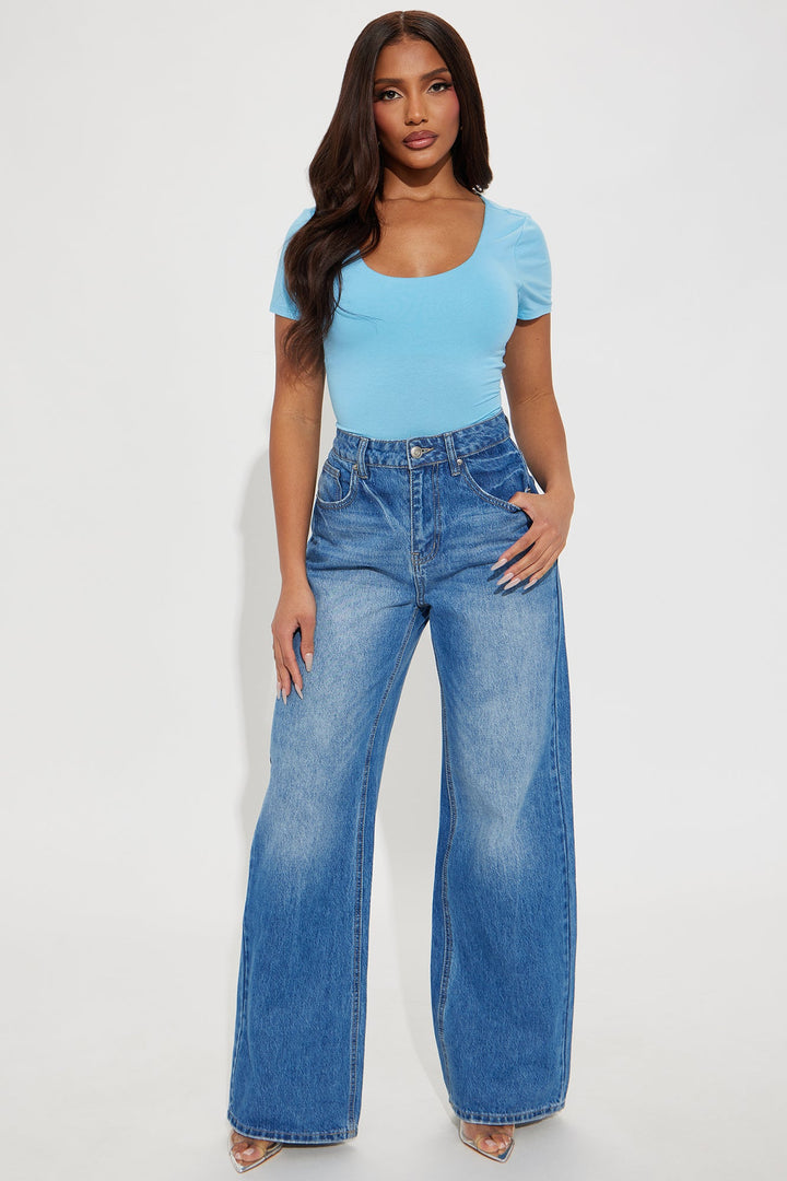 Veronica Double Lined Jersey Bodysuit - SkyBlue