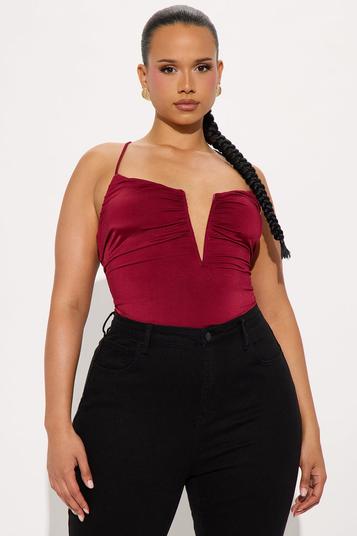 Very Unyielding V-Wire Ruched Bodysuit - Burgundy