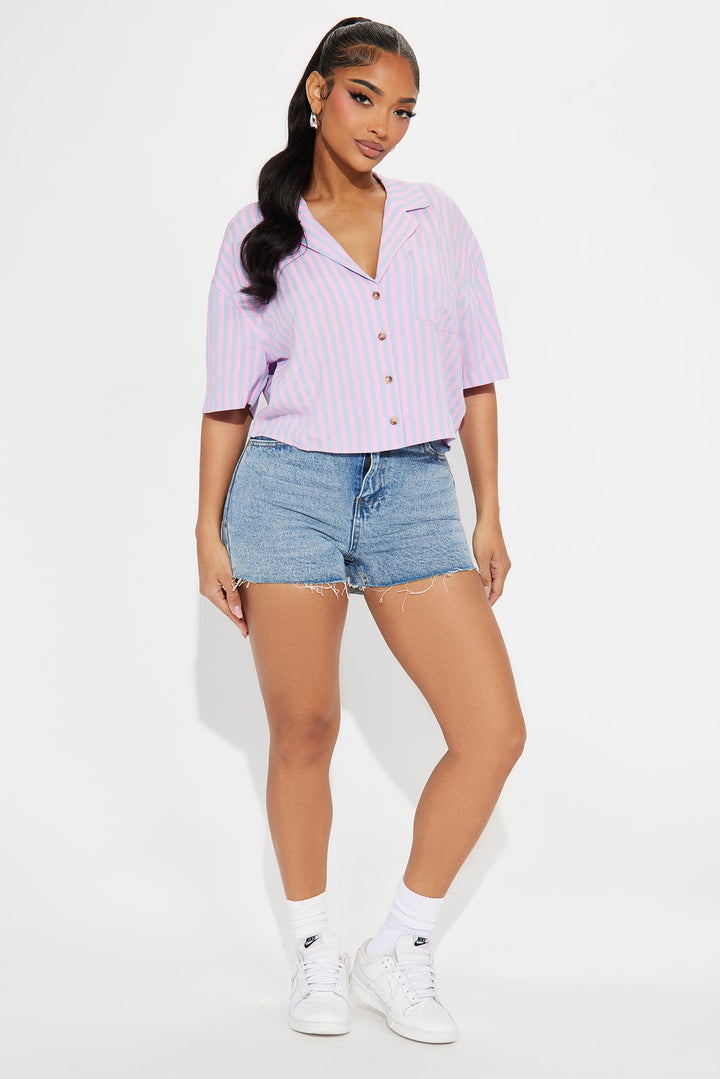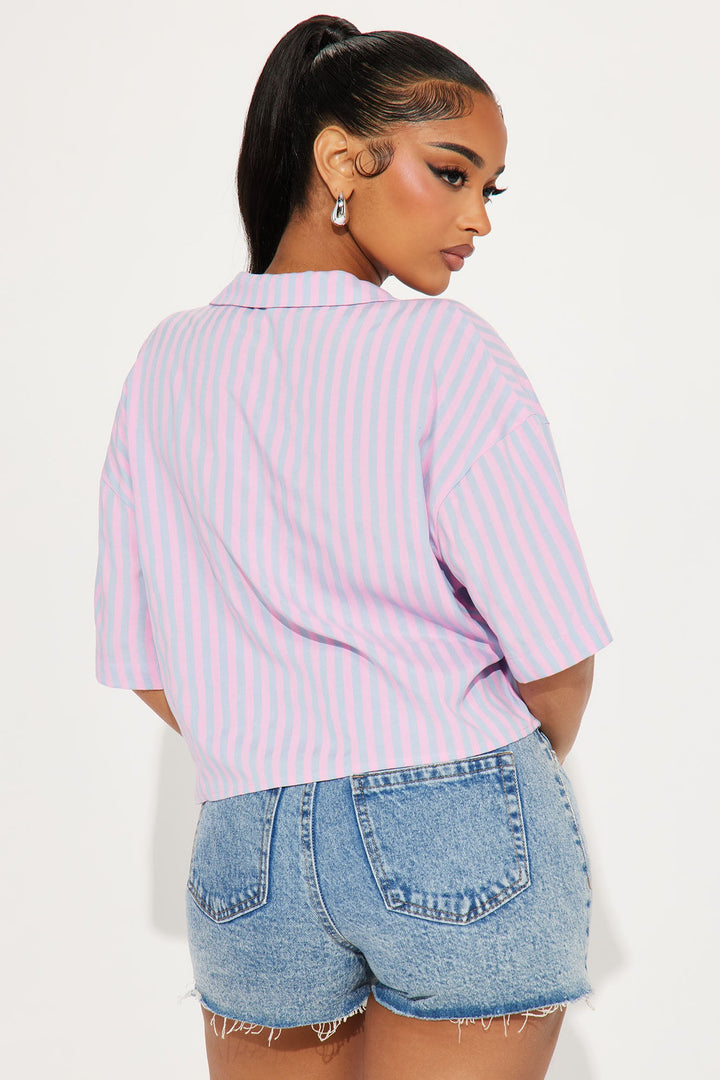 Available In Pink/combo. | Striped Shirt | Short Sleeve | Front Pocket | Collar | Button Front | Non Stretch | 80% Polyester 20% Cotton | Imported