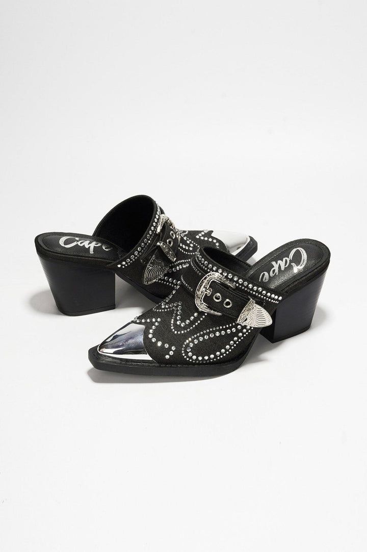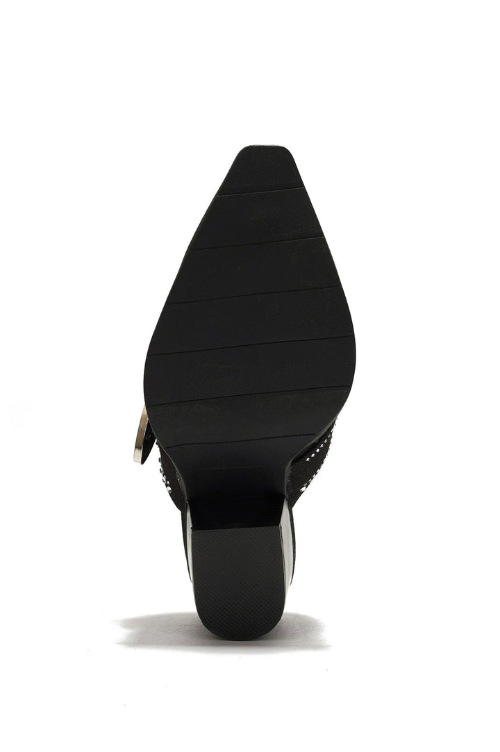 VIV - BLACK - HEELS by CAPE ROBBIN 3 Inch Western Style Chunk Heel Closed Toe Glamorous Rhinestone Embellished PU Leather Insolve Memory Foam Footbed Made for the ultimate fashionista,these heels are the perfect statement piece for attending events. With their denim design,they effortlessly combine style and versatility. Get your Viv Heels now and be the fashion icon you were meant to be.