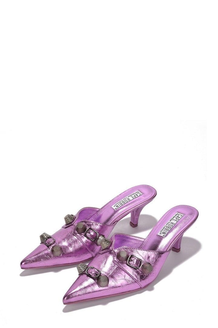 VIVIANLY - LILAC - HEELS by CAPE ROBBIN pointed toe barely there heels metallic stud detail open back padded insole lilac green blue black silver orange These Vivianly pointed toe,barely there heels are the perfect statement-making shoes for any special occasion. Featuring a metallic finish with stud detail and an open back,these heels are sure to turn heads. The padded insole ensures maximum all-day comfort,so you can dance the night away in style.