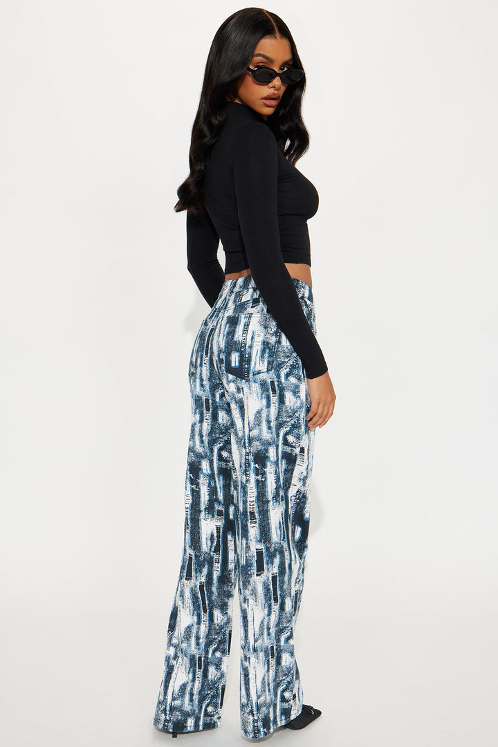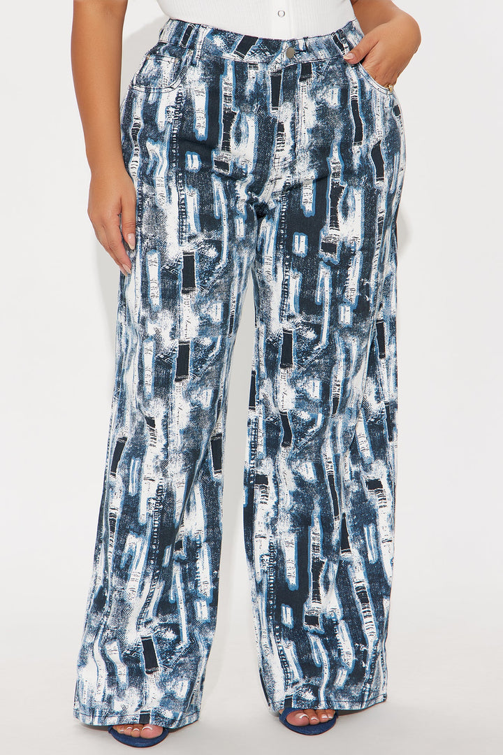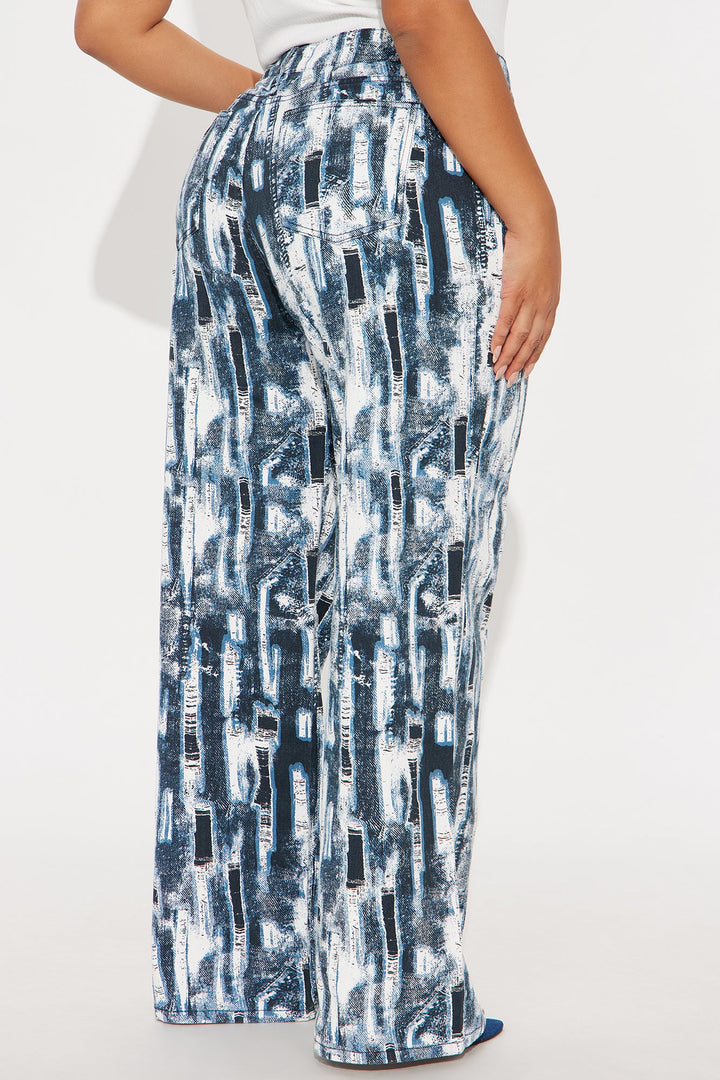 Vivid Dreams Printed Wide Leg Jeans - Blue/combo