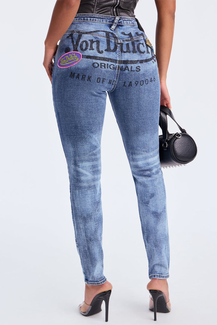 Von Dutch Eyeball Low Rise Skinny Jeans - Medium Wash