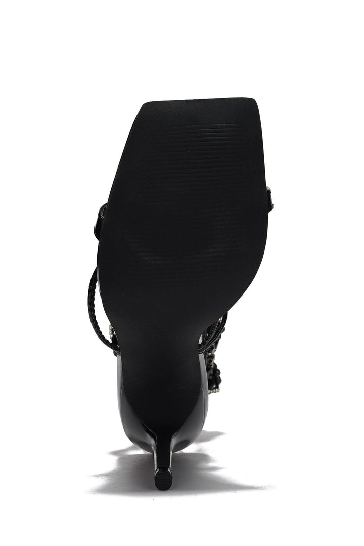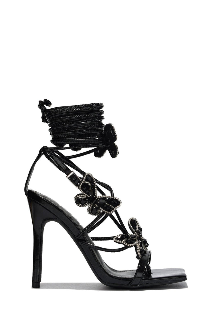 VONNI - BLACK - HEELS by CAPE ROBBIN open square toe buckle closure lightly cushioned footbed rubber outsole PU lace-up Spread your wings and fly with Vonni! Features a strappy silhouette,embellished butterfly design,and a metallic finish. The exquisite attention to detail frees up the authentic you.