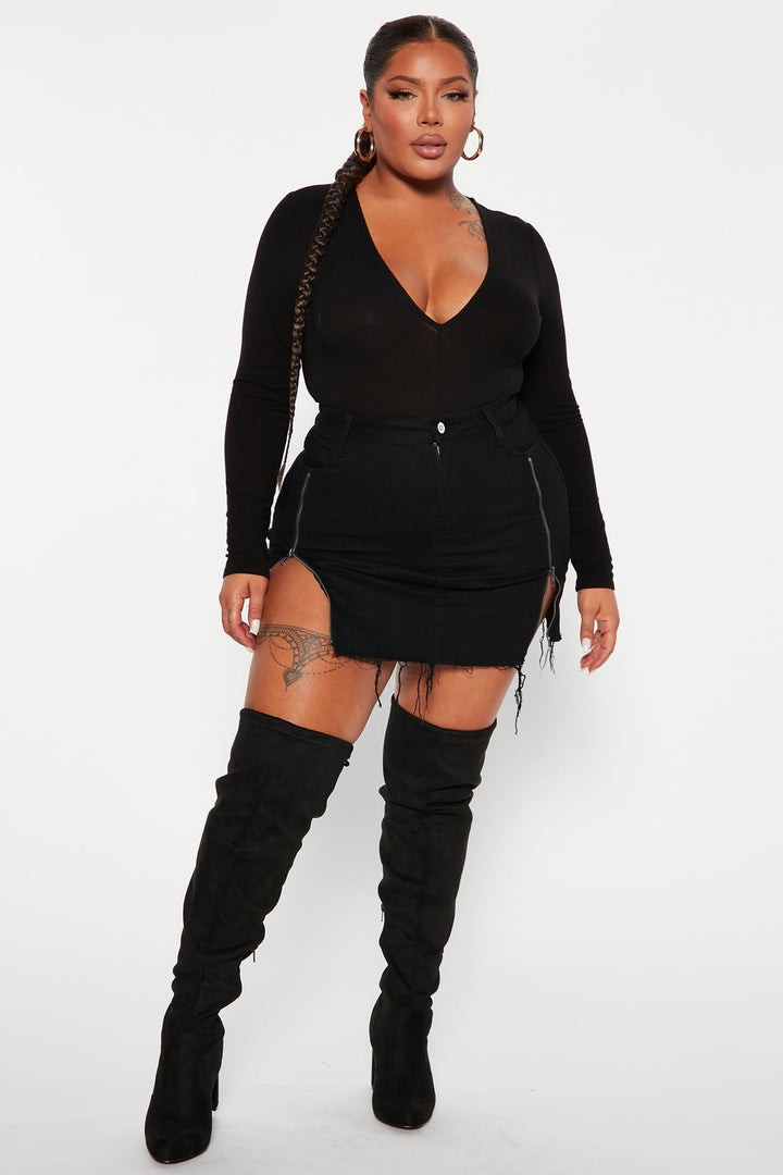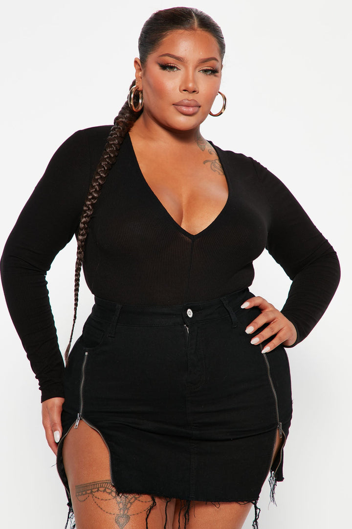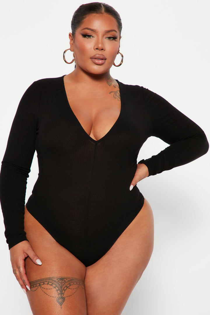 Waiting On Nothing Long Sleeve Ribbed Bodysuit - Black