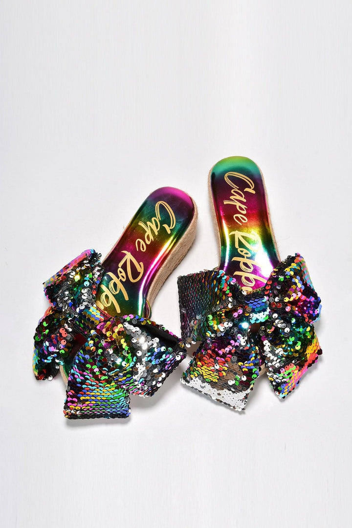 WATIZ - RAINBOW - PLATFORM by CAPE ROBBIN espadrille platforms bow trim sequin finish sequin bow These Watiz espadrille platforms are the perfect pair for a fun day in the sun. The sparkly sequined bow will make you shine and stand out from the rest.