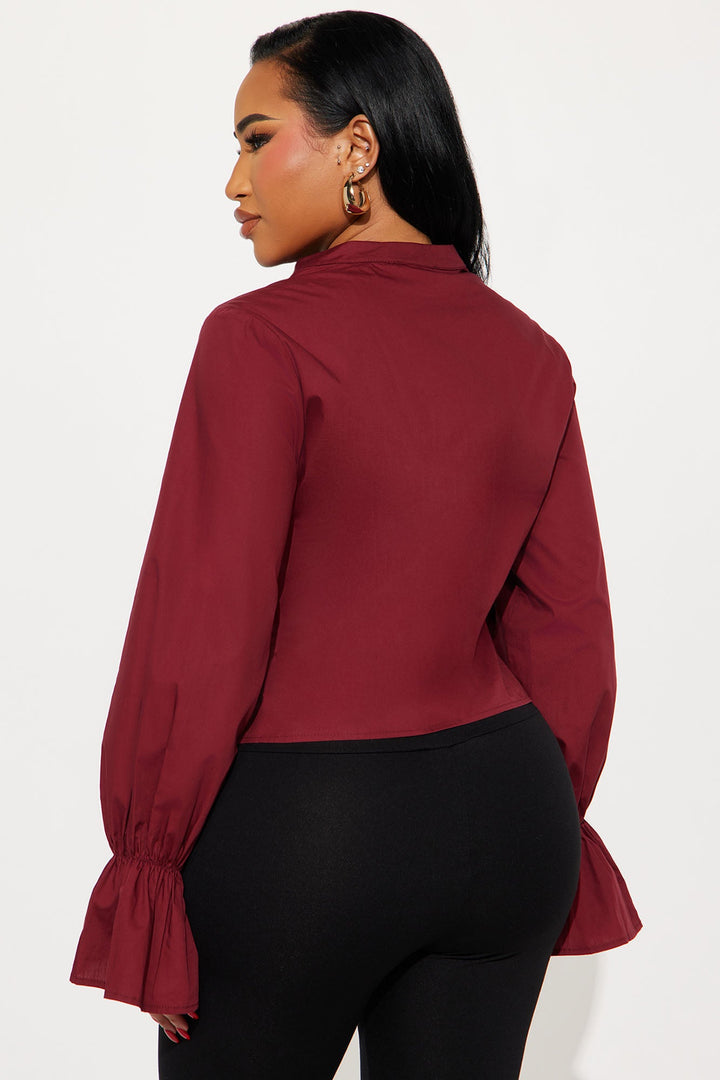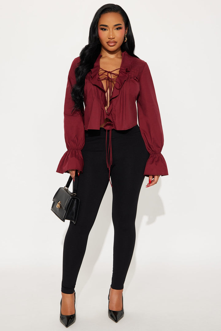 Weekend Unlocked Ruffle Flyaway Top - Burgundy