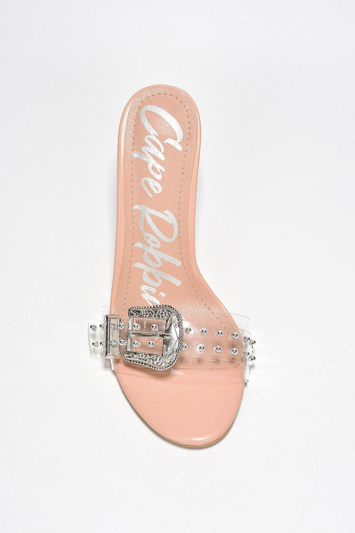 WESTIN - CLEAR - HEELS by CAPE ROBBIN open pointy toe buckle accessory lightly cushioned footbed rubber outsole Cape Robbin's Westin is the glitz to your glam. These heels are chic and sophisticated but so full of attitude. The Western-inspired buckle is the icing on the cake with its delicate detail. Wear with your favorite skirt to transition from a casual Friday to an evening cocktail.