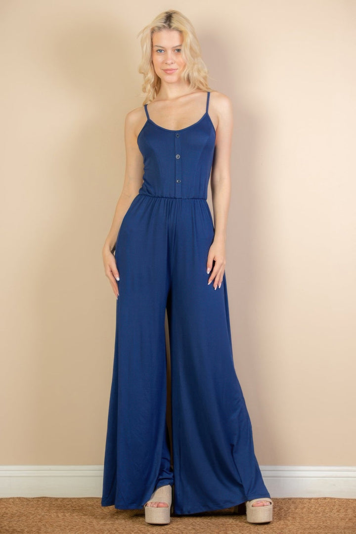 Update your style with our Button Front Wide Leg Jumpsuit, a versatile and chic piece designed for effortless elegance and comfort. Made from a soft, lightweight, and high-stretch jersey fabric, this jumpsuit offers a flattering fit while allowing you to move with ease. Key Features: Fabric: Soft, high-stretch jersey made from 92% Polyester and 8% Spandex for maximum comfort and flexibility Fit: Wide-leg design with a button-front detail, offering a relaxed yet structured silhouette Color Options: Available in Black, Khaki, Navy, and White Sizes: Small, Medium, Large Design: Featuring a button-front closure, wide-leg pants, and a flattering waistline that enhances your figure Versatile Styling: Perfect for work, casual outings, or evening events. Pair with heels for a polished look or with flats for a more relaxed style Product Details: Comfortable All-Day Wear: The stretchy jersey fabric provides comfort without sacrificing style, allowing you to wear it from day to night effortlessly. Quality Craftsmanship: Made with careful attention to detail, this jumpsuit maintains its shape while offering an elegant, smooth finish. Why Choose Button Front Wide Leg Jumpsuit This jumpsuit is the perfect combination of comfort, style, and sophistication. The high-stretch jersey ensures a snug yet flexible fit, while the wide-leg cut adds a touch of drama. The button-front design brings a vintage-inspired twist, making it suitable for a variety of occasions, from casual weekends to more formal settings. Ideal Occasions: Perfect for office wear, brunch dates, or evening outings. Its versatile design can be dressed up with accessories or kept casual for a laid-back look. Customer Reviews: "This jumpsuit is incredibly comfortable, and the fabric has just the right amount of stretch. I love how flattering it is!" M. Carter "The wide-leg fit is perfect, and the button detail adds a nice touch. it's easy to dress up or down." L. Turner "The quality is excellent, and the fit is true to size. I highly recommend it!" S. Patel Size Guide: For accurate sizing guidance, please review our size chart available on the website. Shipping and Returns: Fast Shipping: We offer speedy delivery to your doorstep. Hassle-Free Returns: If you're not completely satisfied, our flexible return policy ensures your peace of mind. Make a bold yet comfortable statement with our Button Front Wide Leg Jumpsuit. Add it to your cart today and experience a blend of timeless elegance and effortless style! Button Front Wide Leg Jumpsuit