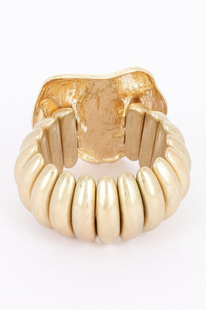 Introducing the Alloy Casting Stretch Bracelet, a stunning piece that radiates elegance with its large, hammered oval, gold-plated face. Designed to make a statement, this bracelet adds a touch of luxury and sophistication to any outfit. Its stretch design ensures a comfortable, secure fit, making it a versatile addition to your jewelry collection. Key Features: Fabric: High-quality alloy with a gold-plated finish Fit: Standard size approximately 3 x 3 inches Color Options: Gold Sizes: One size fits most Design: Features a large, hammered oval design with a smooth stretch band for an effortless and comfortable fit Versatile Styling: Ideal for both casual and formal occasions, this bracelet adds a bold touch to any ensemble Product Details: Comfortable All-Day Wear: The stretch design provides a flexible and comfortable fit, allowing for easy wear throughout the day. Quality Craftsmanship: Crafted with attention to detail, this bracelet is designed to maintain its luxurious gold finish and hammered texture over time. Why Choose the Alloy Casting Stretch Bracelet The Alloy Casting Stretch Bracelet is a statement piece that brings together elegance and modern style. The hammered oval design creates a unique texture that catches the light, making it a standout accessory for any occasion. Its stretch band ensures comfort, allowing you to wear it all day with ease. Ideal Occasions: Perfect for evening events, formal occasions, or as an eye-catching accessory to elevate your everyday look. Its bold design makes it suitable for a variety of occasions, adding an element of sophistication and luxury. Customer Reviews: "I love the hammered texture! It adds so much character to the bracelet, and the gold is so chic." Grace W. "This bracelet is the perfect statement piece. It's bold yet elegant and goes with everything." Lily A. "The stretch design is so comfortable! I wear it all the time, and it always stands out." Emma R. Size Guide: For accurate sizing guidance, please review our size chart available on the website. Shipping and Returns: Fast Shipping: We offer speedy delivery to your doorstep. Hassle-Free Returns: If you're not completely satisfied, our flexible return policy ensures your peace of mind. Add the Alloy Casting Stretch Bracelet to your collection today and experience the perfect blend of luxury, comfort, and style! Alloy Casting Stretch Bracelet