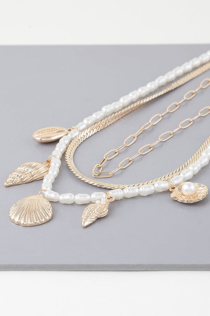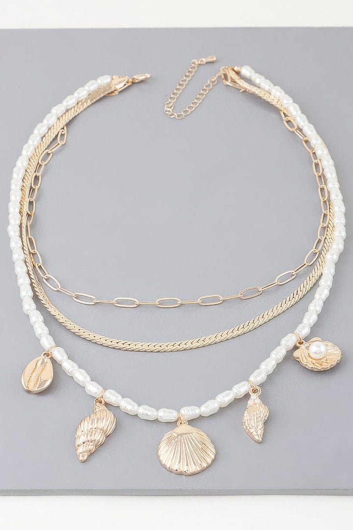 Introducing the Multi Seashell Charm Necklace, an exquisite piece that captures the beauty of the coast. The "Pearl & Gold Harmony Necklace" features a luxurious gold chain adorned with a beautiful pearl necklace, complemented by charming seashell accents. This stunning combination of elegance and coastal charm will elevate your style and add a unique touch to any outfit. Key Features: Fabric: Crafted from high-quality metal with a radiant Gold finish, the necklace features a lustrous pearl strand and delicate seashell charms that create a beautiful, coastal-inspired design. Fit: Measuring approximately 14 inches, this necklace sits perfectly along the neckline for a refined and elegant look. Color Options: Available in a classic Gold Cream finish that complements the pearl accents and enhances the beauty of the seashell charms. Design: The combination of pearls and seashells evokes the peaceful charm of the ocean, offering a unique, sophisticated accessory. Versatile Styling: This necklace is perfect for beach-inspired outfits, casual outings, or adding a touch of coastal elegance to more formal wear. Product Details: Comfortable All-Day Wear: Lightweight and designed for comfort, this necklace can be worn all day, making it a versatile piece for any occasion. Quality Craftsmanship: Expertly crafted with attention to detail, this necklace is designed for durability and lasting beauty. Why Choose Multi Seashell Charm Necklace This necklace effortlessly combines the elegance of pearls with the beauty of the ocean, making it a perfect accessory for those who love coastal-inspired fashion with a touch of sophistication. Ideal Occasions: Perfect for beach outings, casual gatherings, or adding a unique twist to formal outfits, this necklace brings a touch of coastal beauty wherever you go. Customer Reviews: "I absolutely love this necklace! The combination of pearls and seashells is so elegant and unique." - Mia F. "This necklace is perfect for adding a beachy vibe to any outfit. It's stunning and so comfortable to wear." - Sophie R. "The quality is amazing, and the design is so beautiful. It's my new favorite necklace!" - Chloe T. Size Guide: For accurate sizing guidance, please refer to our size chart available on the website. Shipping and Returns: Fast Shipping: We offer speedy delivery to your doorstep. Hassle-Free Returns: If you're not completely satisfied, our flexible return policy ensures your peace of mind. Add the Multi Seashell Charm Necklace to your collection today and embrace the elegance of the sea with this timeless and unique accessory. Multi Seashell Charm Necklace