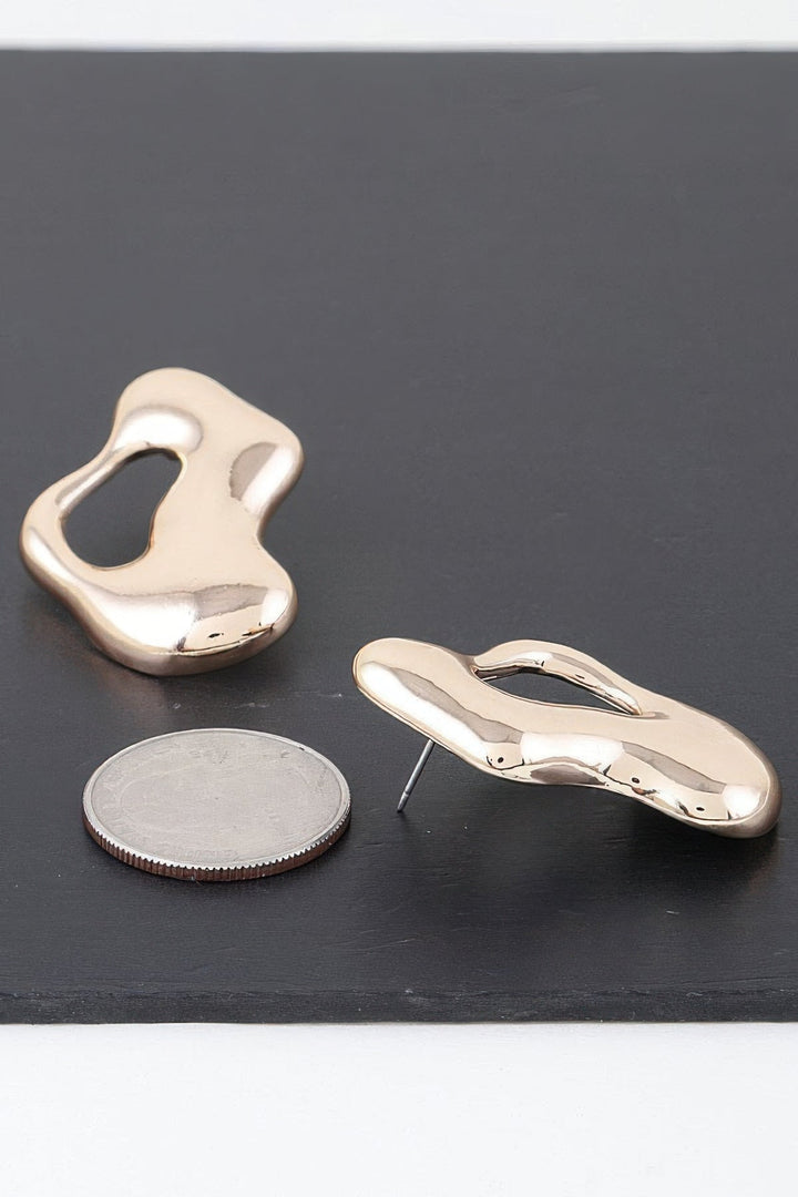 Make a statement with our Abstract Modern Puddle Earrings, an artistic and contemporary design that adds a unique touch to your accessory collection. These earrings are the perfect blend of bold style and refined elegance. Key Features: Fabric: Crafted from high-quality metal with a smooth, polished gold finish. Fit: The secure post-back design ensures a comfortable and stable fit for everyday wear. Color Options: Available in Gold. Sizes: Approx. 1 x 1.6 inches. Design: Featuring an abstract, puddle-like shape that creates a fluid, organic look, these earrings offer a distinctive, modern aesthetic. Versatile Styling: These earrings are versatile enough to pair with both casual and more formal looks, adding a unique twist to any outfit. Product Details: Comfortable All-Day Wear: Designed for comfort and ease, these lightweight earrings can be worn throughout the day without discomfort. Quality Craftsmanship: Expertly crafted with attention to detail, these earrings offer long-lasting durability and a luxurious finish. Why Choose Abstract Modern Puddle Earrings These earrings are a bold, artistic statement piece that effortlessly elevates any outfit. Their modern, abstract design makes them perfect for anyone who loves to incorporate unique, creative elements into their wardrobe. Ideal Occasions: Perfect for casual outings, evening events, or adding a contemporary touch to your everyday wardrobe. Customer Reviews: "These earrings are so unique! I love how they stand out and add a creative edge to my outfits." - Ella S. "A perfect balance of boldness and elegance. they're my new favorite statement earrings." - Liam R. "I love how lightweight and comfortable they are, while still making a strong statement!" - Grace W. Size Guide: For accurate sizing guidance, please review our size chart available on the website. Shipping and Returns: Fast Shipping: We offer speedy delivery to your doorstep. Hassle-Free Returns: If you're not completely satisfied, our flexible return policy ensures your peace of mind. Add the Abstract Modern Puddle Earrings to your collection today and experience the perfect blend of bold design and refined sophistication! Abstract Modern Puddle Earrings