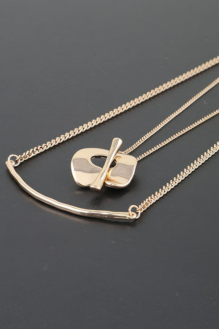 Elevate your jewelry collection with our Toggle Hook Chain Necklace, a sleek and versatile piece that blends modern design with a classic feel. Featuring a simple yet stylish toggle hook closure, this necklace is perfect for adding a refined touch to any outfit, from casual to formal occasions. Key Features: Fabric: Crafted from high-quality metal with a polished finish, available in Gold and Silver Fit: 14" Approx, designed to sit comfortably and elegantly around your neckline Color Options: Available in Gold and Silver Design: Features a minimalist chain with a functional toggle hook clasp, adding both style and ease to the design Versatile Styling: Ideal for layering with other necklaces or wearing alone for a sleek, understated look Product Details: Comfortable All-Day Wear: The Toggle Hook Chain Necklace is lightweight and comfortable, making it perfect for daily wear without discomfort. Quality Craftsmanship: Each necklace is meticulously crafted to ensure durability and a smooth, polished finish that lasts. Why Choose Toggle Hook Chain Necklace This necklace combines minimalist design with functional elegance, offering a stylish and effortless accessory for any occasion. The toggle hook adds a unique twist, making it stand out as both a chic and practical piece. Ideal Occasions: Perfect for casual outings, office wear, or layering with other accessories for an elegant touch. Customer Reviews: "I love the simplicity and elegance of this necklace. The toggle hook is such a cool detail!" - Lucy P. "This necklace is perfect for layering. It's subtle yet stylish and goes with everything." - Sarah F. "I bought it in silver and wear it every day. It's lightweight and so comfortable." - Natalie L. Size Guide: For accurate sizing guidance, please review our size chart available on the website. Shipping and Returns: Fast Shipping: We offer speedy delivery to your doorstep. Hassle-Free Returns: If you're not completely satisfied, our flexible return policy ensures your peace of mind. Add the Toggle Hook Chain Necklace to your collection today and enjoy a stylish, functional accessory for every occasion! Toggle Hook Chain Necklace