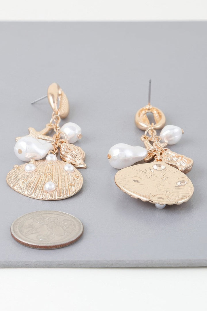 Elevate your accessory collection with our Pearled Under the Sea Drop Earrings, a stunning piece that adds a touch of elegance and sophistication to any outfit. Crafted with intricate detail, these earrings are designed to make a statement and complement your style effortlessly. Key Features: Fabric: Gold-plated metal with cream pearls for a luxurious, polished finish Fit: Drop earrings with a comfortable hook fastening Color Options: Gold with cream pearls Sizes: 1 x 3" approx Design: Features beautiful cream pearls suspended from a sleek gold frame, creating a graceful, shimmering effect Versatile Styling: Perfect for formal occasions, elegant dinners, or to add a refined touch to your everyday look Product Details: Comfortable All-Day Wear: The lightweight design ensures you can wear these earrings all day with ease and comfort. Quality Craftsmanship: Expertly crafted with attention to detail, these earrings are designed to last and retain their stunning look. Why Choose Pearled Under the Sea Drop Earrings These earrings provide a unique combination of elegance and versatility, effortlessly enhancing any outfit. Their timeless design allows them to be worn for a variety of occasions, adding a chic touch to both casual and formal looks. Ideal Occasions: Perfect for formal events, elegant dinners, or as a luxurious accessory for a night out. Customer Reviews: "These earrings are absolutely stunning! They are lightweight and perfect for any event." - Sarah W. "Love how they add a touch of elegance to my outfit. They go with everything!" - James L. "A beautiful pair of earrings! So chic and stylish, I get compliments every time I wear them." - Laura M. Size Guide: For accurate sizing guidance, please review our size chart available on the website. Shipping and Returns: Fast Shipping: We offer speedy delivery to your doorstep. Hassle-Free Returns: If you're not completely satisfied, our flexible return policy ensures your peace of mind. Add a touch of elegance to your accessory collection with our Pearled Under the Sea Drop Earrings. Order today and experience the perfect blend of sophistication and style! Pearled Under The Sea Drop Earrings