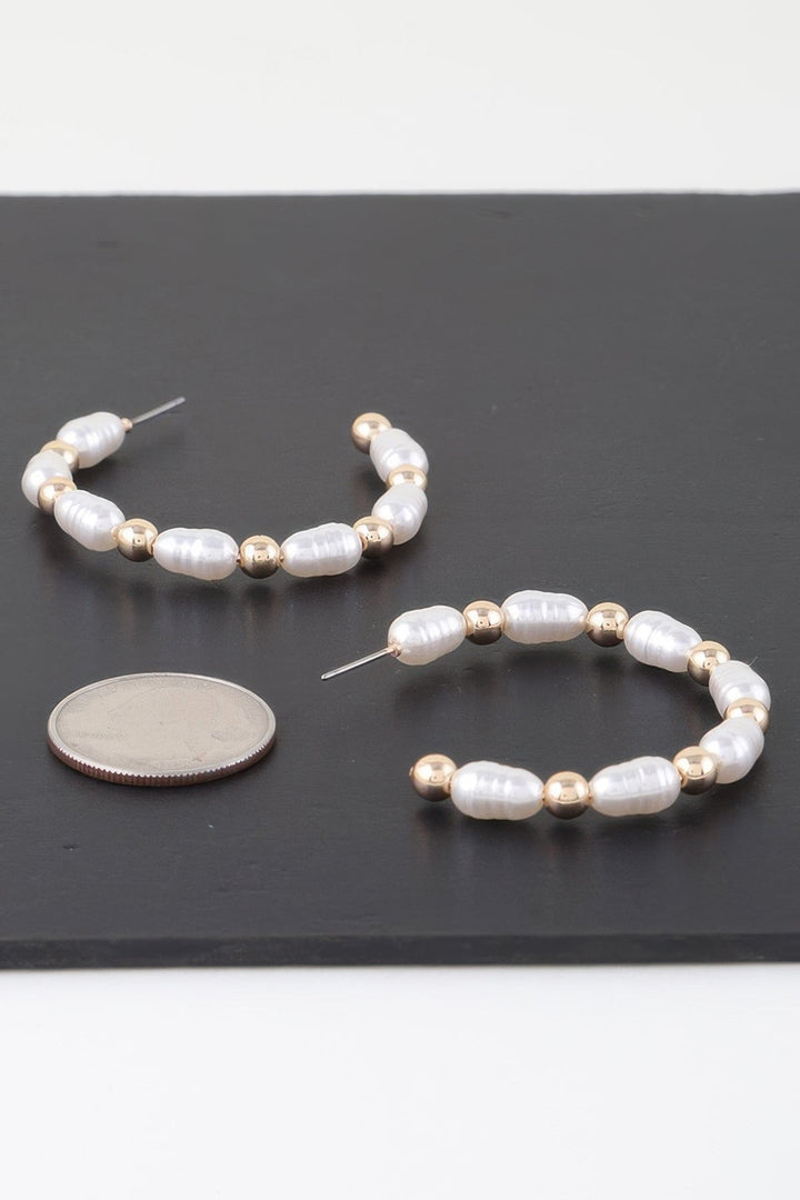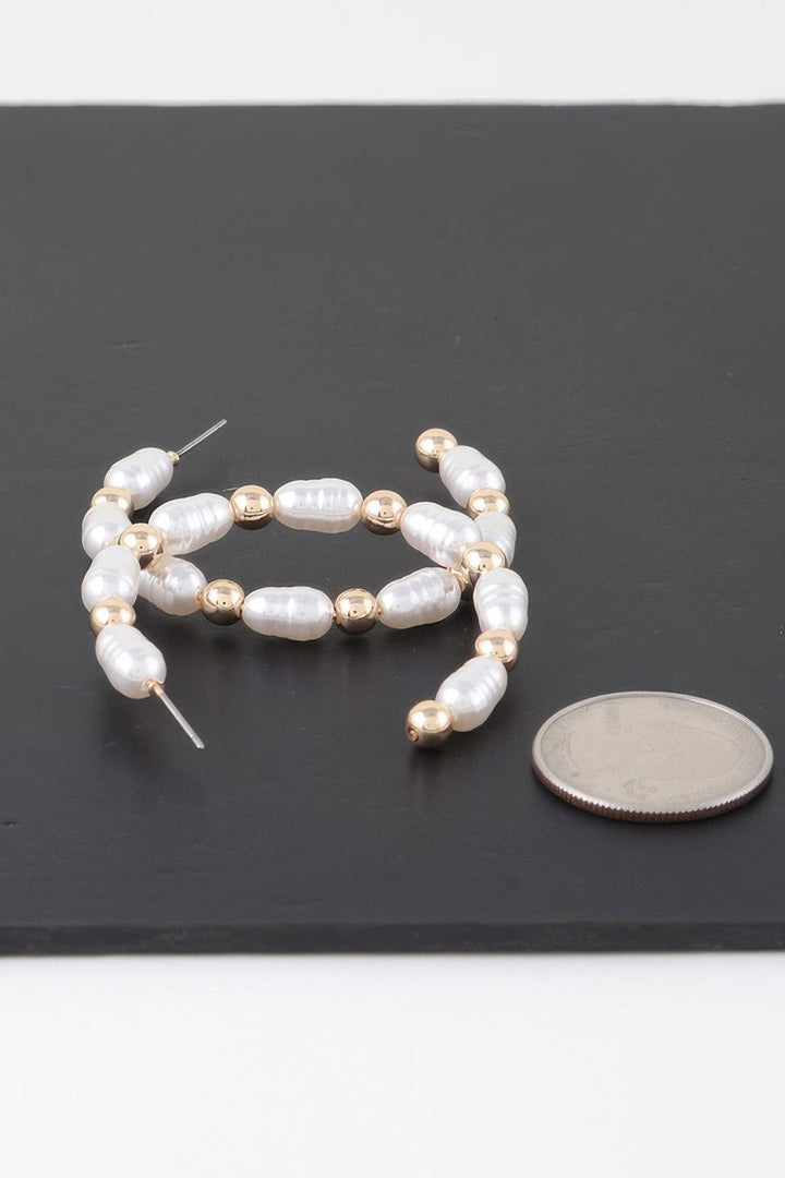 Enhance your accessory collection with our Multi Pearl Beaded Hoop Earrings, a refined yet bold design that adds a sophisticated touch to any ensemble. These earrings combine modern elegance with the timeless beauty of pearls, making them the perfect finishing touch for both everyday wear and special occasions. Key Features: Fabric: Premium pearls and durable metal with a smooth finish Fit: Hoop design with a secure fastening, ensuring comfortable wear throughout the day Color Options: Gold Cream Sizes: Approximate dimensions of 1.8 x 1.8" Design: The multi-pearls are thoughtfully arranged along the hoop, offering a chic and polished look Versatile Styling: These earrings pair effortlessly with both casual outfits and evening attire, making them perfect for any occasion Product Details: Comfortable All-Day Wear: Lightweight and designed for a comfortable fit, these earrings are ideal for wearing from morning to night. Quality Craftsmanship: Meticulously crafted to provide both durability and lasting beauty. Why Choose Multi Pearl Beaded Hoop Earrings These earrings are the perfect balance of style and sophistication. With their unique design and attention to detail, they add elegance to any look, whether you're dressing up for a night out or adding a special touch to your daily wardrobe. Ideal Occasions: Perfect for formal events, casual outings, or evening gatherings—these earrings are versatile enough to elevate any outfit. Customer Reviews: "Such a beautiful design! The pearls make them so elegant and chic." Hannah T. "I love how lightweight they are. They add the perfect amount of sparkle to my outfit." Lily R. "These earrings are my new go-to for every event. So stylish and comfortable!" Sarah B. Size Guide: For accurate sizing guidance, please review our size chart available on the website. Shipping and Returns: Fast Shipping: We offer speedy delivery to your doorstep. Hassle-Free Returns: If you're not completely satisfied, our flexible return policy ensures your peace of mind. Add a touch of elegance to your jewelry collection with our Multi Pearl Beaded Hoop Earrings. Order now and experience the perfect fusion of modern style and timeless charm! Multi Pearl Beaded Hoop Earrings