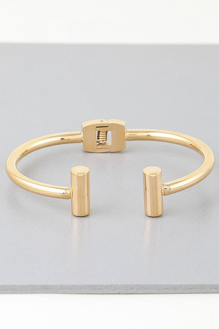 Hammer Down Cuff Bracelet Bold Elegance with a Modern Edge Make a statement with the Hammer Down Cuff Bracelet , a striking fusion of contemporary design and timeless sophistication . Crafted for those who appreciate bold yet refined accessories, this exquisite cuff bracelet features a sleek square metal bar , adding a modern and structured touch to the classic cuff silhouette. Key Features: Modern & Minimalist Design: The clean lines and polished finish make this bracelet a versatile and sophisticated addition to any jewelry collection. Perfect Size: Measuring approximately 2.2" x 2.4" , it provides a comfortable fit while maintaining a sleek and stylish look. Lightweight & Comfortable: Designed for all-day wear, this cuff sits securely on the wrist without feeling too heavy. Versatile Styling: Whether worn alone for a minimalist aesthetic or layered with other bracelets for a stacked look, it effortlessly enhances any outfit. Premium Craftsmanship: Made with high-quality, tarnish-resistant materials, ensuring durability and long-lasting shine. The Hammer Down Cuff Bracelet is more than just an accessory; It's a statement piece that blends strength and elegance . Whether you're dressing up for a special occasion or adding a bold touch to your everyday style, this bracelet is the perfect finishing touch. Perfect for: Everyday wear with a modern edge Special occasions, events, and nights out A stylish gift for birthdays, anniversaries, and fashion-forward individuals Elevate your jewelry collection with the Hammer Down Cuff Bracelet , a must-have piece that exudes confidence, sophistication, and effortless style . Hammer Down Cuff Bracelet