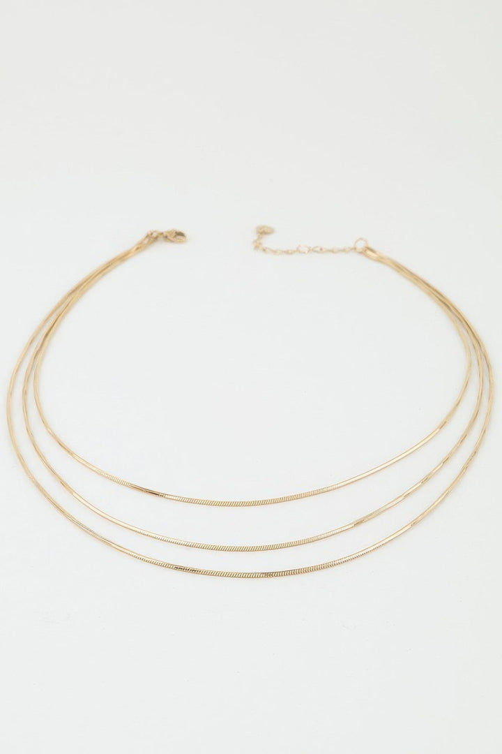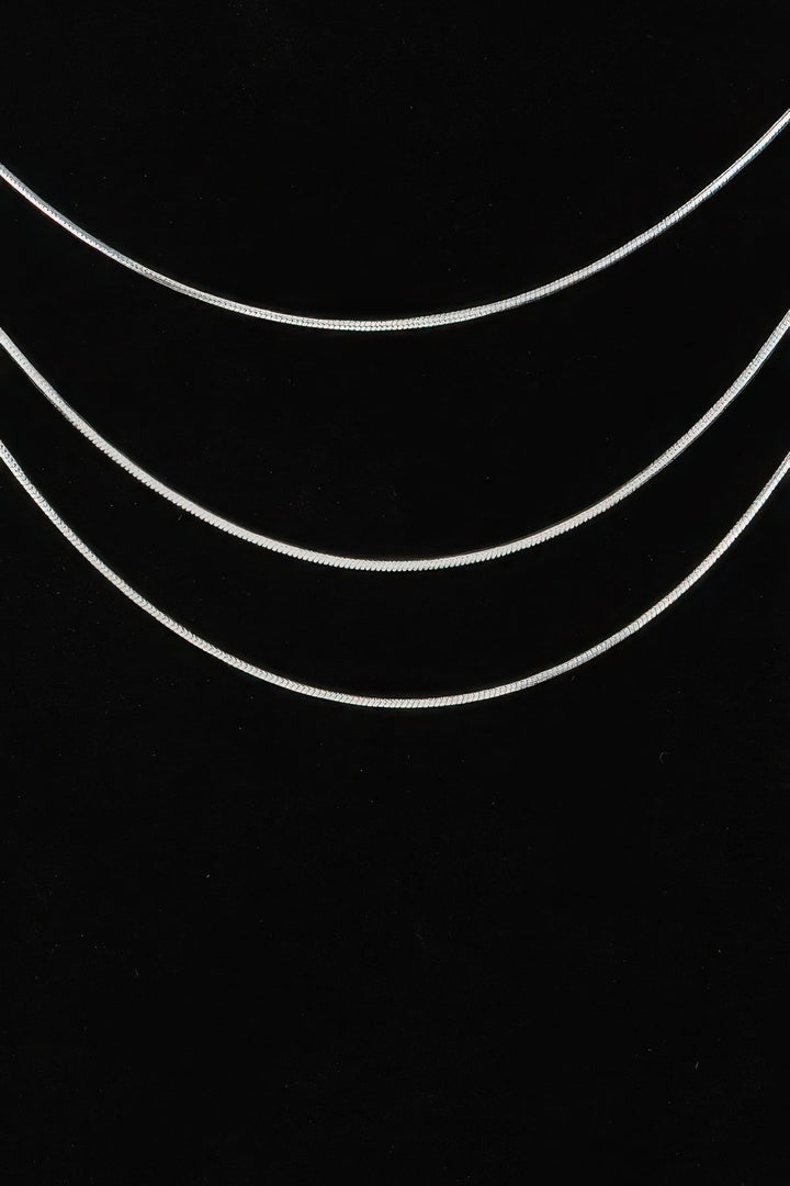 Elevate your jewelry collection with our Triple Sleek Chain Necklace, a chic and modern piece that adds a bold yet refined touch to any ensemble. Carefully crafted to offer both elegance and versatility, this necklace is a perfect addition to any outfit. Key Features: Fabric: Gold-tone and silver-tone metal chains Fit: 14" Approx. Color Options: Gold, Silver Design: Features three sleek, interconnected chains that create a sophisticated layered effect Versatile Styling: Ideal for both casual and formal occasions, this necklace can be paired with everything from a simple tee to an evening gown Product Details: Comfortable All-Day Wear: Designed to sit comfortably on your neckline, this necklace is lightweight yet sturdy, perfect for wearing from morning to night. Quality Craftsmanship: Each chain is meticulously crafted with attention to detail, ensuring a smooth, polished finish and long-lasting durability. Why Choose Triple Sleek Chain Necklace With its sleek, layered design, this necklace offers a sophisticated and polished look. The mix of gold and silver tones ensures versatility, making it a go-to accessory for any occasion. Ideal Occasions: Perfect for casual outings, office wear, or evening events. The sleek design makes it suitable for layering with other pieces or wearing on its own. Customer Reviews: "Absolutely love the sleek look of this necklace. It's the perfect statement piece!" - Maya T. "So versatile! I wear it with everything from dresses to casual tops. Highly recommend!" - Chloe D. "The gold finish is gorgeous, and the length is just right. It adds the perfect touch to any outfit." - Anna L. Size Guide: For accurate sizing guidance, please review our size chart available on the website. Shipping and Returns: Fast Shipping: We offer speedy delivery to your doorstep. Hassle-Free Returns: If you're not completely satisfied, our flexible return policy ensures your peace of mind. Make a statement with the Triple Sleek Chain Necklace. Add it to your cart now and experience the perfect combination of sophistication and style! Triple Sleek Chain Necklace