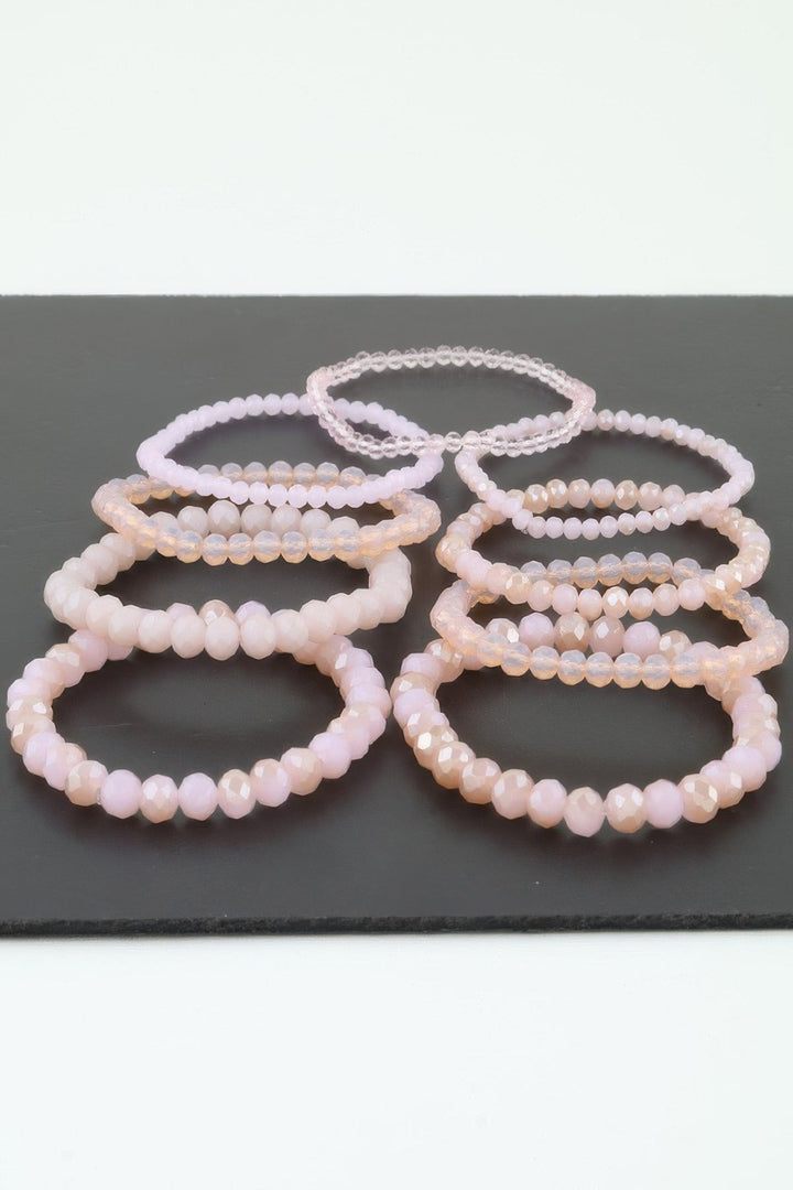 Add a pop of color and elegance to your wrist with the Multi Pastel Pink Crystal Beaded Bracelet. This stunning bracelet features an array of pastel-colored crystals, creating a delicate and vibrant design that effortlessly enhances any outfit. Key Features: Fabric: Crystal beads with a durable stretch band Fit: 2.4 x 2.4" Approx. Color Options: Black, Clear, Gray, Light Blue, Light Turquoise, Pink Design: Features a mix of pastel-colored crystals in varying sizes and shapes, arranged to create a beautiful, eye-catching pattern Versatile Styling: Perfect for layering with other bracelets or wearing alone for a subtle yet vibrant statement Product Details: Comfortable All-Day Wear: The stretch band ensures a snug yet comfortable fit, making it perfect for daily wear. Quality Craftsmanship: Carefully strung with attention to detail, each bead is securely placed for a polished and lasting design. Why Choose Multi Pastel Pink Crystal Beaded Bracelet This bracelet adds a touch of color and elegance to any look, with its gentle pastel hues and versatile design. The crystal beads sparkle with movement, making it an ideal accessory for both casual and dressy outfits. Ideal Occasions: Perfect for casual outings, brunches, beach days, or adding a pop of color to formal events and evening wear. Customer Reviews: "I love the pastel colors on this bracelet! It adds such a delicate touch to my outfits." - Olivia B. "Such a beautiful and unique piece! The crystals sparkle so nicely, and it's super comfortable to wear." - Grace T. "The colors are perfect for spring! I get so many compliments every time I wear it." - Ava R. Size Guide: For accurate sizing guidance, please review our size chart available on the website. Shipping and Returns: Fast Shipping: We offer speedy delivery to your doorstep. Hassle-Free Returns: If you're not completely satisfied, our flexible return policy ensures your peace of mind. Add a touch of vibrant elegance to your jewelry collection with the Multi Pastel Pink Crystal Beaded Bracelet. Add it to your cart today and enjoy a perfect blend of color and style! Multi Pastel Pink Crystal Beaded Bracelet