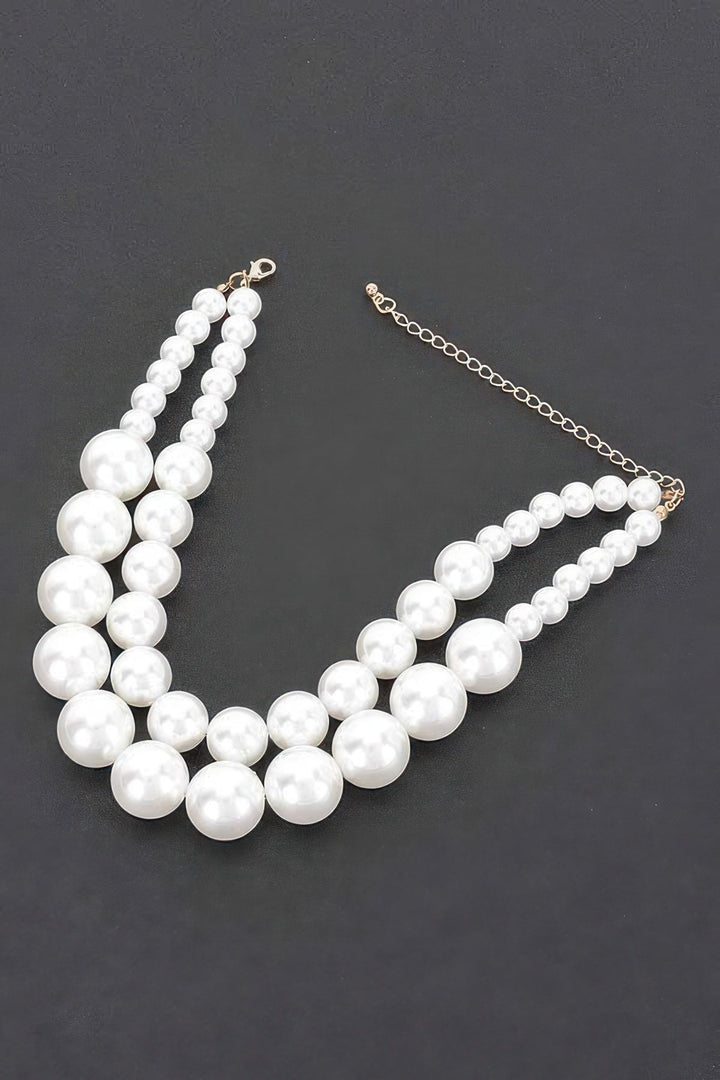 Add a touch of elegance to your jewelry collection with our Faux Pearl Multi Necklace, a timeless piece designed to elevate any outfit. With its sophisticated charm, this necklace is perfect for those who appreciate classic beauty with a modern twist. Key Features: Fabric: Made with high-quality faux pearls, offering a luxurious look and feel Fit: 12" length, designed to sit elegantly around the neck Color Options: Available in Cream Sizes: One size fits most, with an adjustable clasp for comfort Design: Features multiple faux pearls arranged in a multi-strand design, creating a rich, layered effect Versatile Styling: Perfect for adding a touch of grace to both casual and formal outfits, this necklace complements any neckline Product Details: Comfortable All-Day Wear: The lightweight design ensures you can wear this necklace comfortably all day long. Quality Craftsmanship: Each faux pearl is carefully selected and strung to ensure durability and an elegant finish. Why Choose Faux Pearl Multi Necklace This necklace is a perfect balance of classic sophistication and modern style. The creamy faux pearls bring timeless charm, making it a versatile addition to your jewelry box for any occasion. Ideal Occasions: Perfect for formal events, evening dinners, weddings, or a chic addition to your everyday look. Customer Reviews: "This necklace is absolutely stunning! The faux pearls look so real, and it goes with everything." Sophia M. "A gorgeous piece! It adds the perfect amount of elegance to my outfits." Olivia H. "I wear this necklace all the time. It's such a versatile piece, and the quality is fantastic." Laura K. Size Guide: For accurate sizing guidance, please review our size chart available on the website. Shipping and Returns: Fast Shipping: We offer speedy delivery to your doorstep. Hassle-Free Returns: If you're not completely satisfied, our flexible return policy ensures your peace of mind. Add the Faux Pearl Multi Necklace to your cart now and enjoy the perfect blend of luxury and style! Faux Pearl Multi Necklace