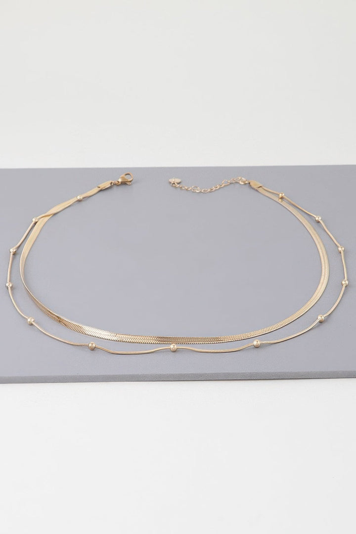 Add a touch of layered elegance to your jewelry collection with our Two Layer Beaded Necklace. Designed for effortless style, this necklace features two delicate layers of beads that create a chic and sophisticated look for any occasion. Key Features: Fabric: Made from high-quality metal and beads, providing a polished and refined appearance Fit: 14" approximate length, designed to sit comfortably around the neck Color Options: Available in Gold and Silver Sizes: One size fits most, with an adjustable clasp to ensure a perfect fit Design: Features two layers of beaded strands that add depth and texture to your look Versatile Styling: Ideal for both casual and formal occasions, this necklace can be worn alone or layered with other pieces for added dimension Product Details: Comfortable All-Day Wear: Lightweight and comfortable, this necklace is perfect for everyday wear or special occasions Quality Craftsmanship: Each bead is carefully strung to ensure durability and a long-lasting shine Why Choose Two Layer Beaded Necklace This necklace effortlessly combines the elegance of beads with a layered design, offering both sophistication and versatility. It's the perfect piece to add a little extra style to your look, whether you're dressing up or down. Ideal Occasions: Perfect for daily wear, evening events, brunches, or as a chic addition to your casual outfits. Customer Reviews: "This necklace is so pretty and delicate. I love the two layers it adds such a nice touch!" Ava L. "I wear this necklace all the time. It's the perfect length and goes with everything!" Lily P. "Such a great quality piece! The beads shine beautifully and the design is so elegant." Emma T. Size Guide: For accurate sizing guidance, please review our size chart available on the website. Shipping and Returns: Fast Shipping: We offer speedy delivery to your doorstep. Hassle-Free Returns: If you're not completely satisfied, our flexible return policy ensures your peace of mind. Add the Two Layer Beaded Necklace to your cart today and experience the perfect blend of simplicity and elegance! Two Layer Beaded Necklace