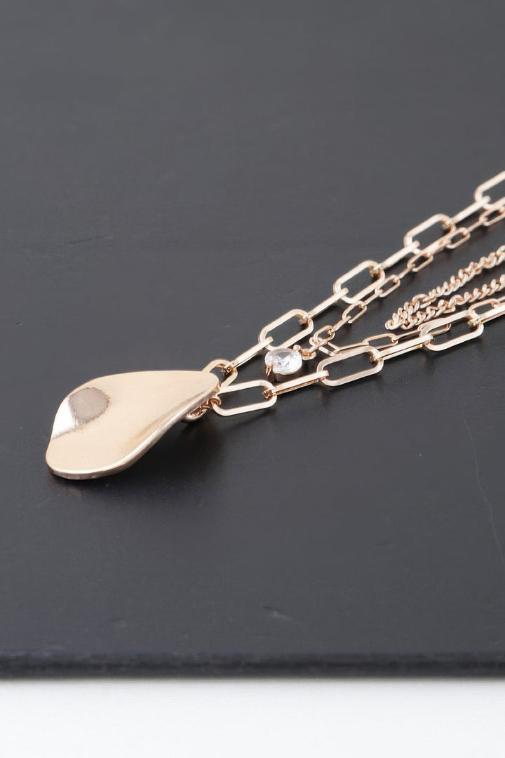 Add a touch of chic sophistication to your jewelry collection with the Metal Pendant Multilayer Necklace. This striking piece features multiple layers of sleek chains and a bold metal pendant, creating a modern yet timeless accessory that effortlessly complements any look. Key Features: Fabric: Crafted from high-quality metal with a polished gold finish for a luxurious appearance Fit: 18" approximate length, designed to rest elegantly around your neckline Color Options: Available in Gold Sizes: One size fits most, with an adjustable clasp for the perfect fit Design: Features a multilayered chain design with a bold metal pendant, offering a sleek and stylish look Versatile Styling: Perfect for both casual and formal occasions, this necklace adds an effortless touch of style to any outfit Product Details: Comfortable All-Day Wear: Lightweight and designed for comfort, this necklace is ideal for all-day wear Quality Craftsmanship: Each piece is carefully crafted to ensure durability and long-lasting shine Why Choose Metal Pendant Multilayer Necklace With its layered chains and bold pendant, this necklace is the perfect accessory for those looking to add a touch of modern elegance to their ensemble. Its versatile design makes it suitable for both casual and dressy occasions. Ideal Occasions: Perfect for evening events, day-to-night wear, casual outings, or as a statement accessory for more formal occasions. Customer Reviews: "I absolutely love this necklace! It's so stylish and looks amazing with every outfit." Emma T. "The layered design is stunning. It's my go-to necklace for adding a little extra to my look!" Ava W. "Such a beautiful piece! It's simple yet bold, and I wear it all the time." Mia K. Size Guide: For accurate sizing guidance, please review our size chart available on the website. Shipping and Returns: Fast Shipping: We offer speedy delivery to your doorstep. Hassle-Free Returns: If you're not completely satisfied, our flexible return policy ensures your peace of mind. Add the Metal Pendant Multilayer Necklace to your cart today and enjoy the perfect balance of modern style and timeless elegance! Metal Pendant Multilayer Necklace